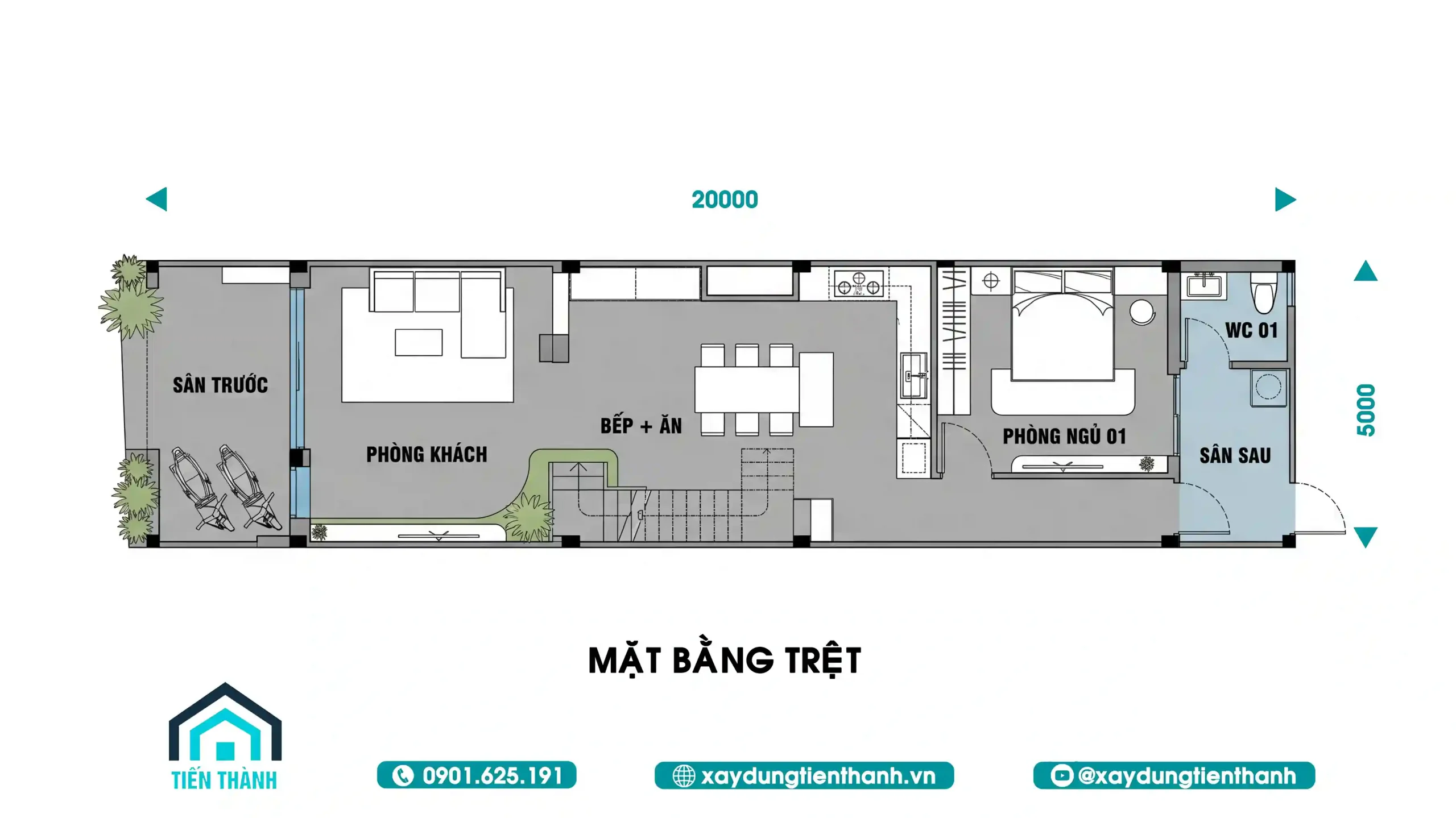 Xây dựng một 5x20m mẫu nhà ống đẹp 3 tầng 5m đòi hỏi sự phối hợp nhịp nhàng giữa thẩm mỹ và kỹ thuật. Với chiều sâu 20m, nếu không xử lý tốt, ngôi nhà rất dễ rơi vào tình trạng thiếu sáng và bí bách.