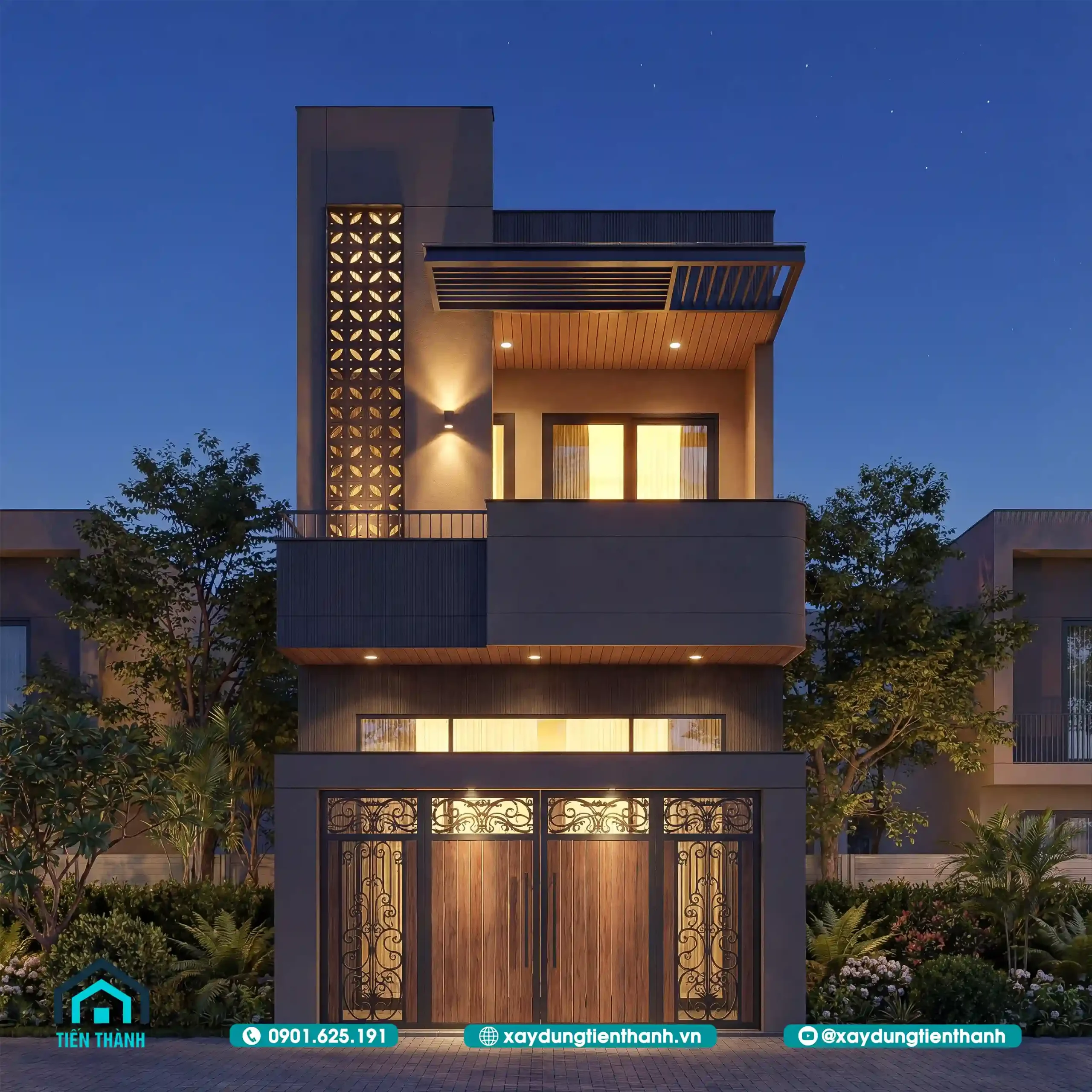 Kích thước 5x20m là tỉ lệ “vàng” cho nhà phố (nhà ống) tại Việt Nam. Chiều sâu 20m cho phép kiến trúc sư dễ dàng phân chia các khu vực chức năng, tạo khoảng đệm và giếng trời để lấy sáng tự nhiên. Đối với mặt tiền 5m, xu hướng hiện nay thiên về phong cách Minimalism (Tối giản) kết hợp với Green Architecture (Kiến trúc xanh).