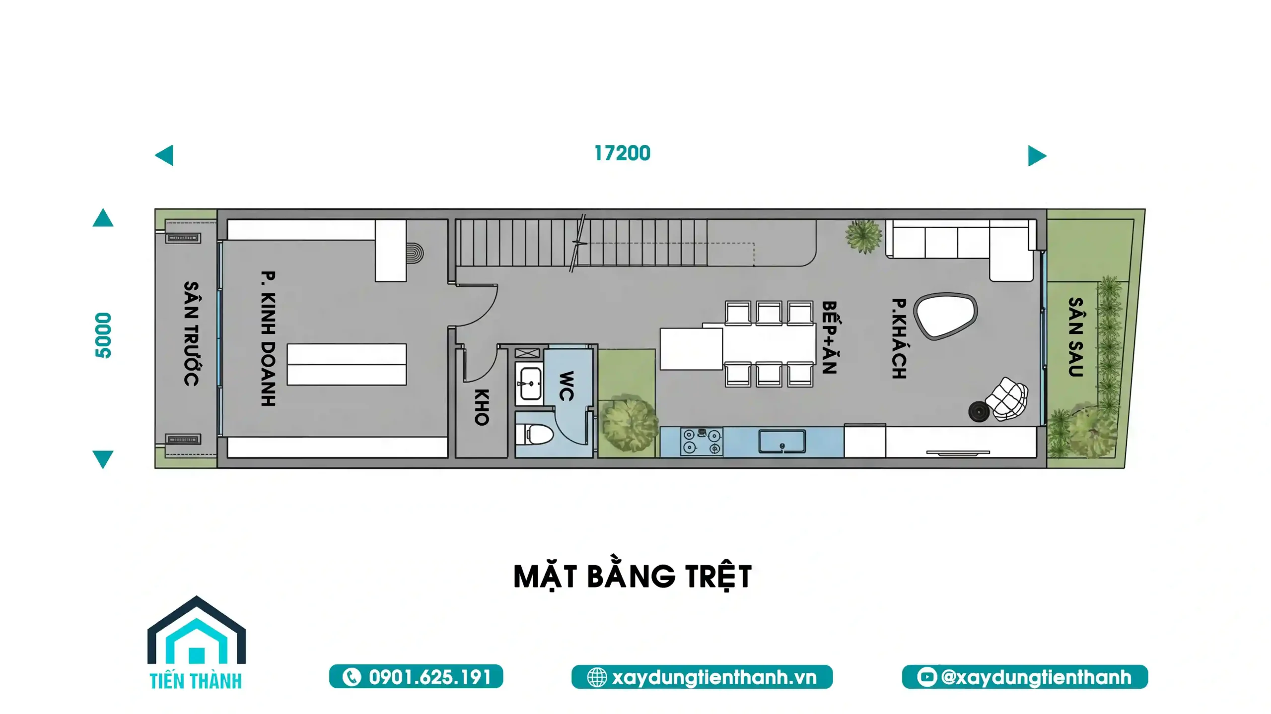 Thiết kế này không chỉ giải quyết vấn đề thẩm mỹ mà còn đáp ứng xu hướng “Smart Living”. Với việc phân chia khu vực kinh doanh riêng ở tầng trệt (như trong bản vẽ mặt bằng), gia chủ có thể tận dụng ngôi nhà để gia tăng thu nhập mà không ảnh hưởng đến sinh hoạt riêng tư ở tầng trên.
