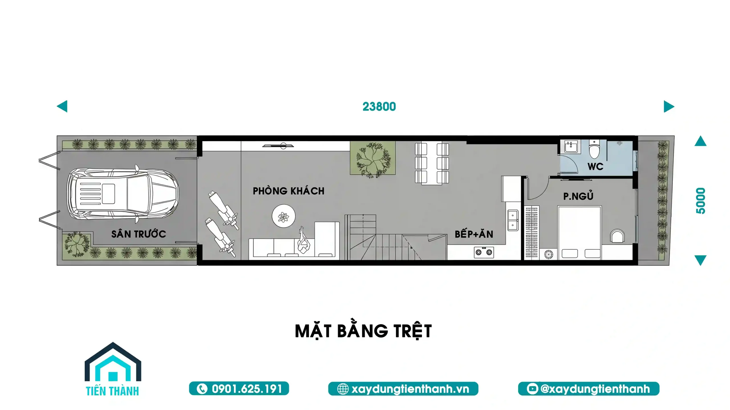 Để một ngôi nhà thực sự “đẹp” như trong các hình ảnh nhà 2 tầng đẹp mà bạn thấy, bản vẽ kỹ thuật đóng vai trò cốt lõi. Mặt bằng tầng trệt của mẫu nhà này được thiết kế theo dạng ống đặc trưng với chiều dài lên tới 23.8m, giúp tối ưu hóa từng mét vuông diện tích.