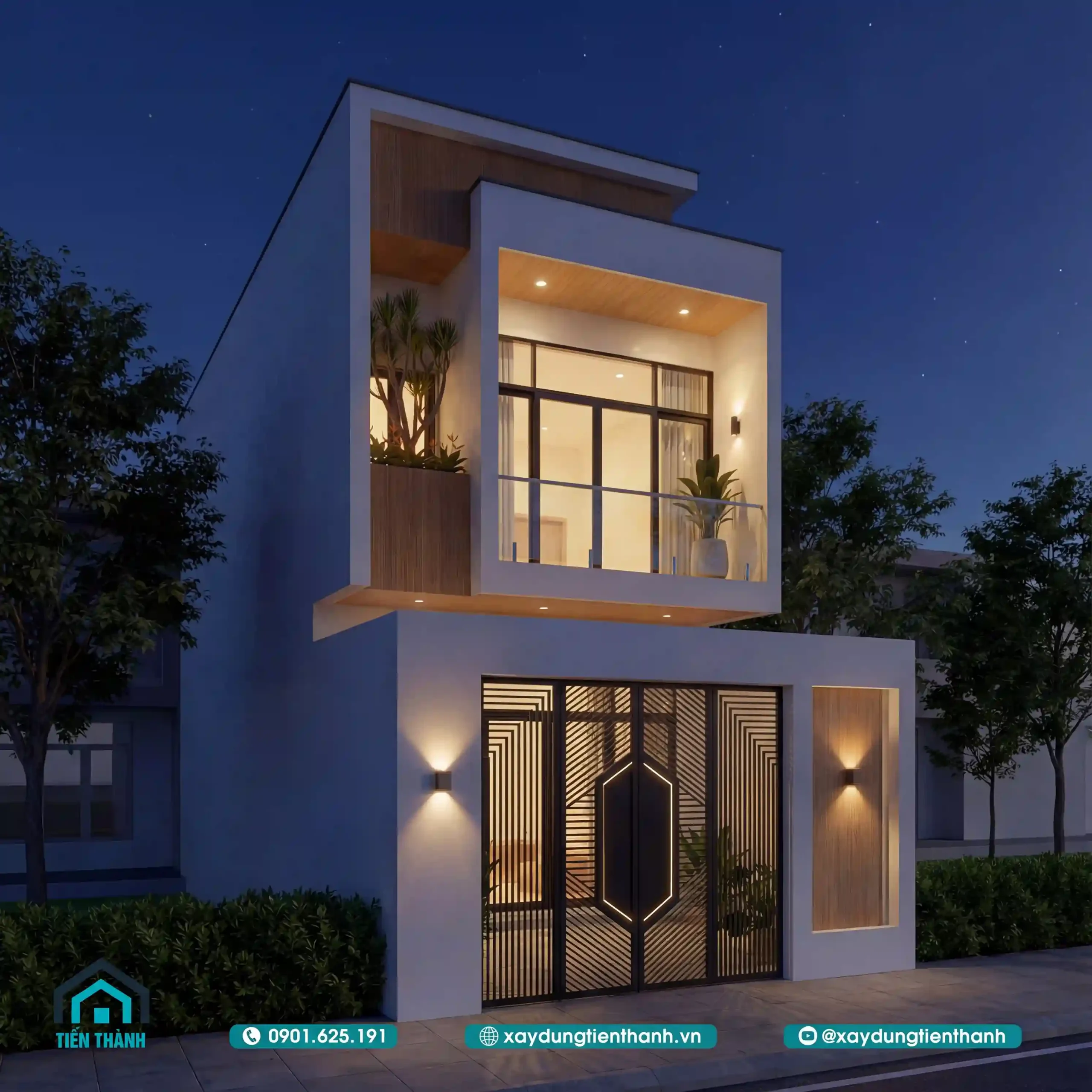 Trong các hình ảnh nhà 2 tầng đẹp hiện nay, việc sử dụng vật liệu giả gỗ (conwood hoặc gạch ốp tường vân gỗ) đang trở thành xu hướng. Loại vật liệu này vừa mang lại vẻ ấm áp như gỗ tự nhiên, vừa có độ bền cao trước thời tiết khắc nghiệt. Bên cạnh đó, kính cường lực được sử dụng cho cả ban công và hệ cửa giúp mở rộng không gian thị giác, khiến ngôi nhà phố có diện tích hẹp trở nên rộng rãi hơn nhiều so với diện tích thực.