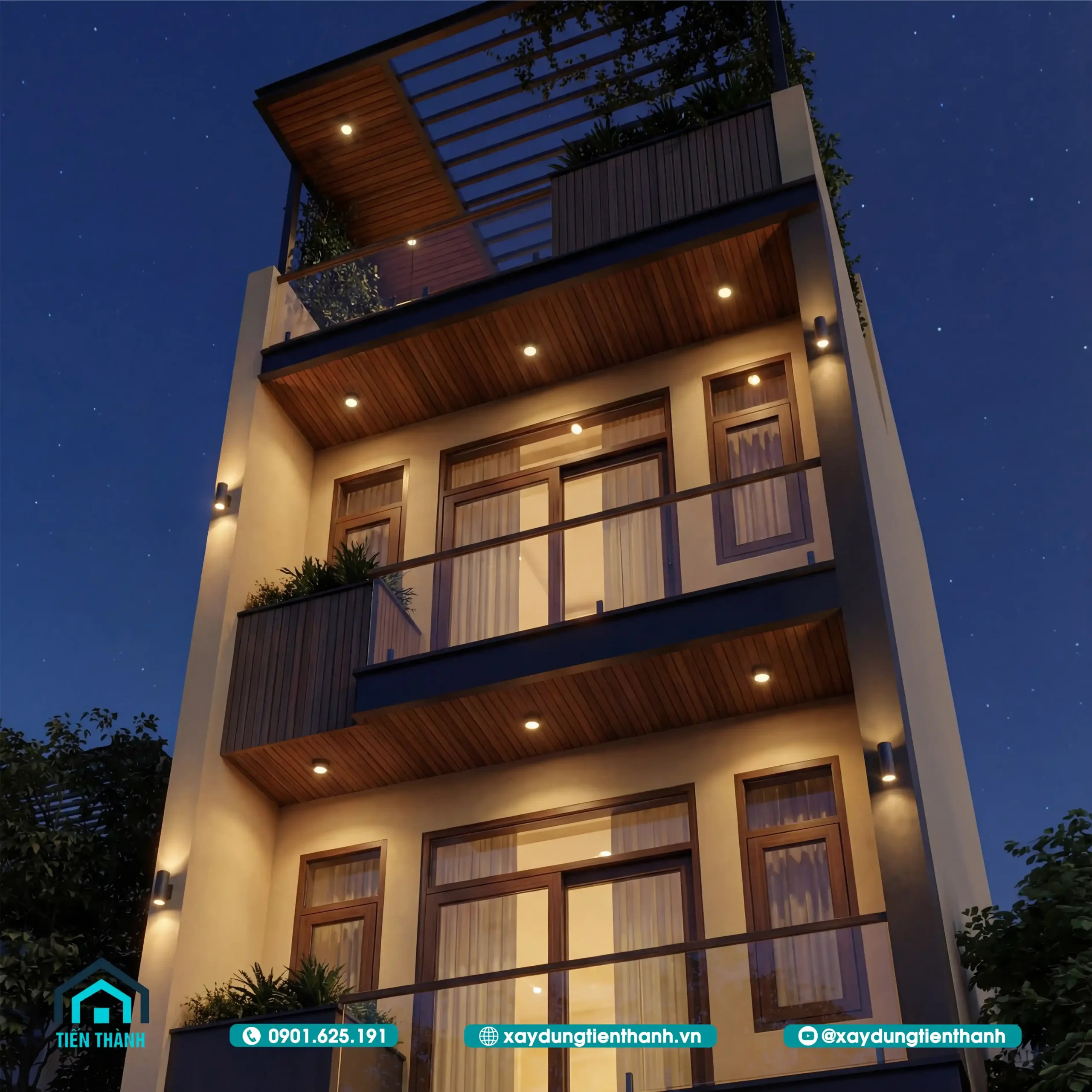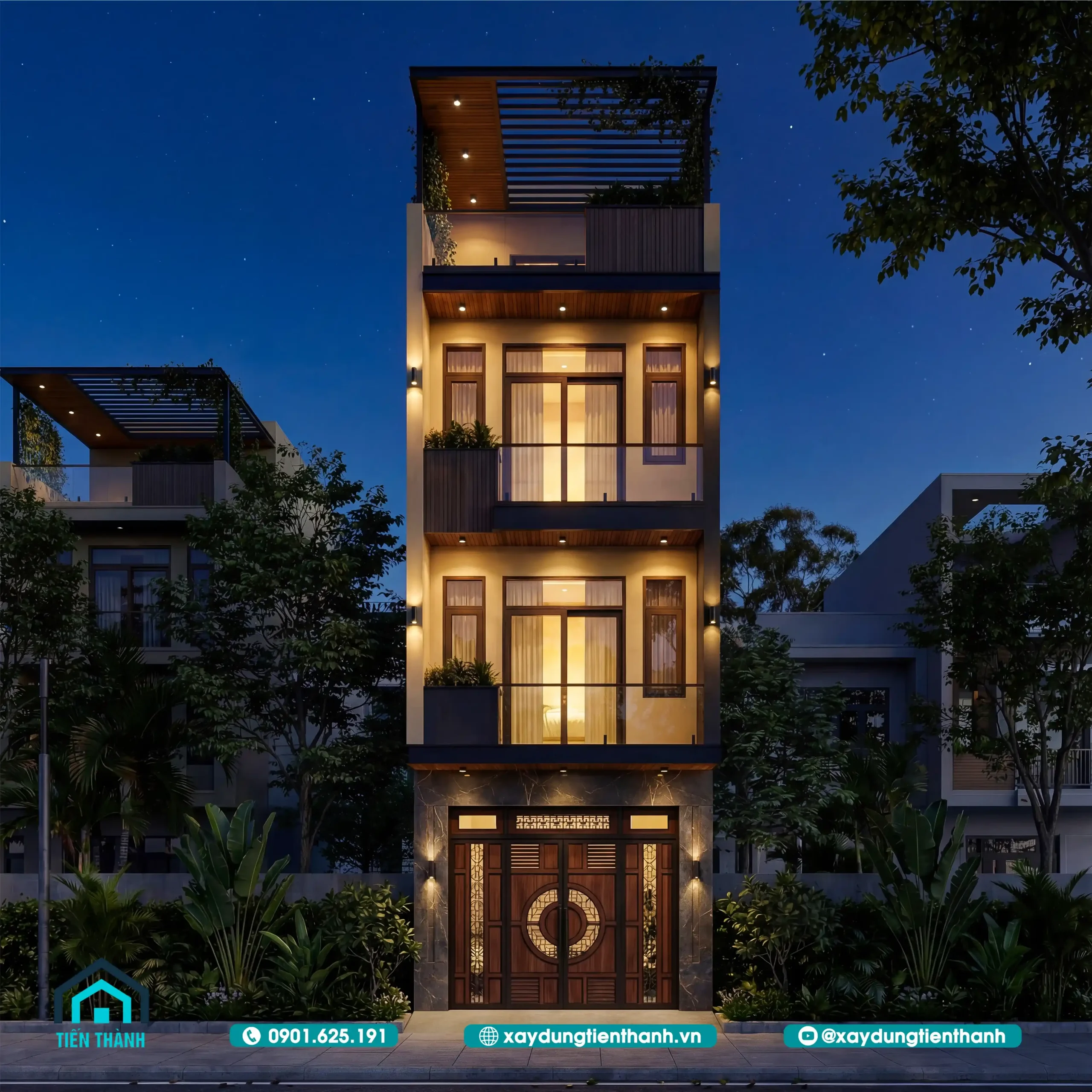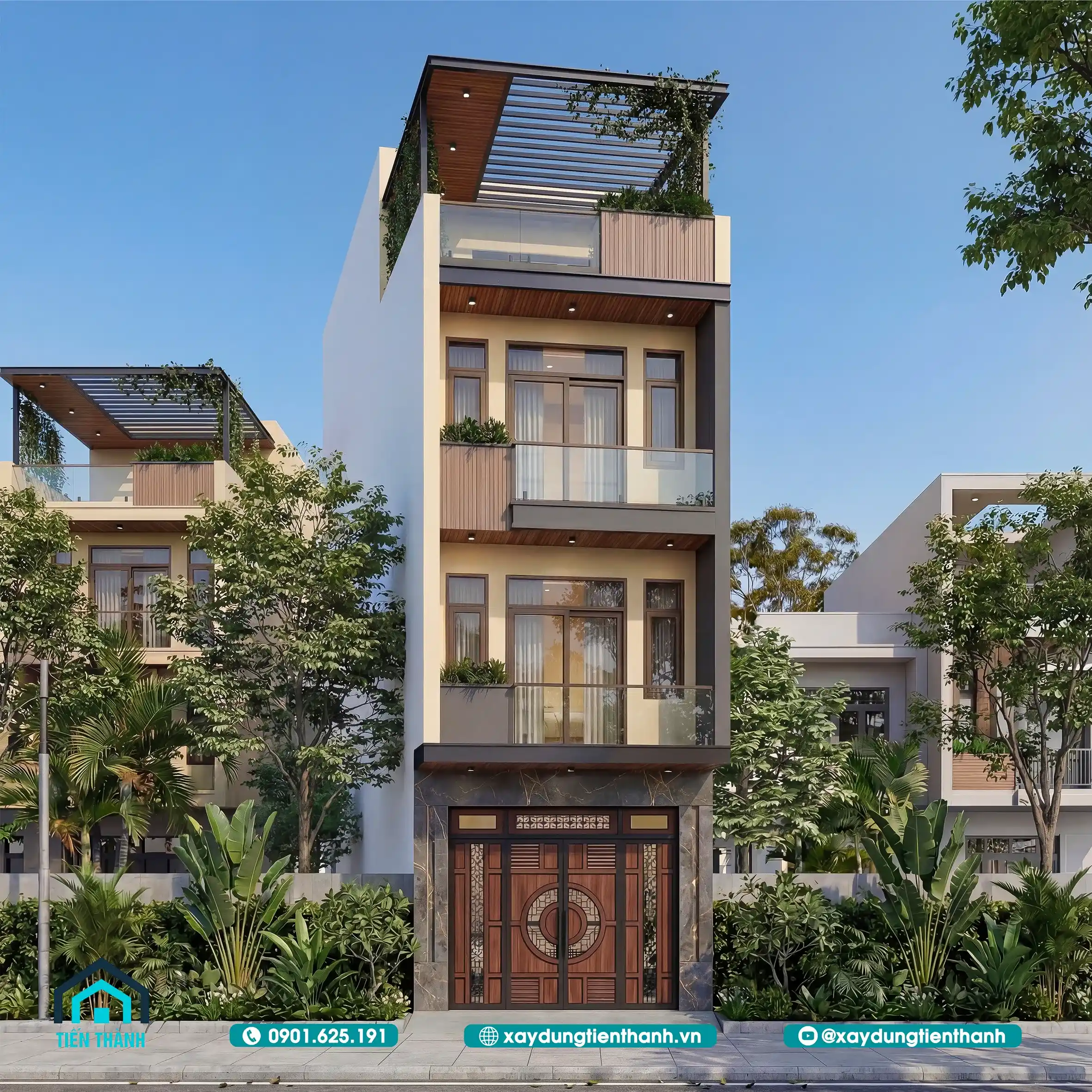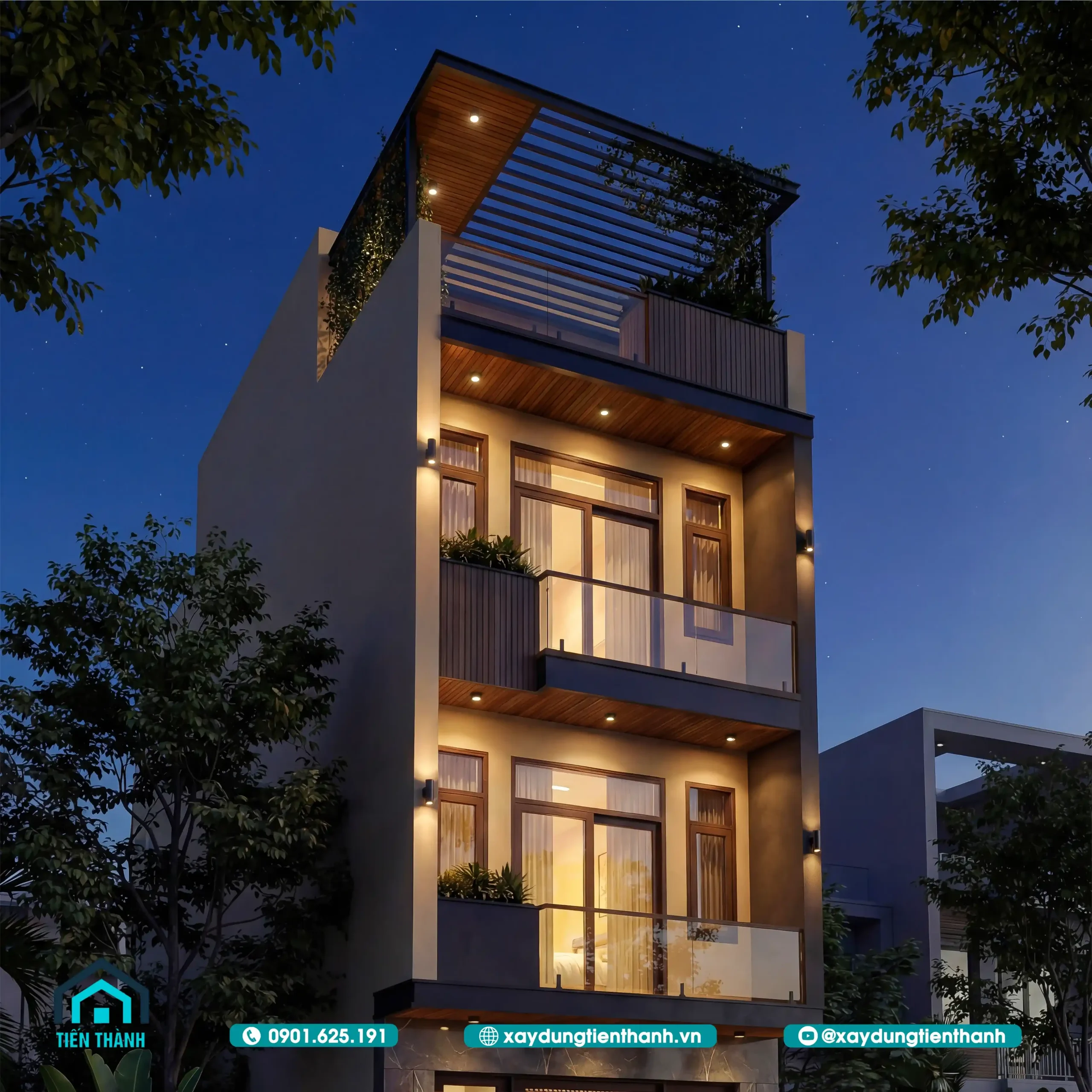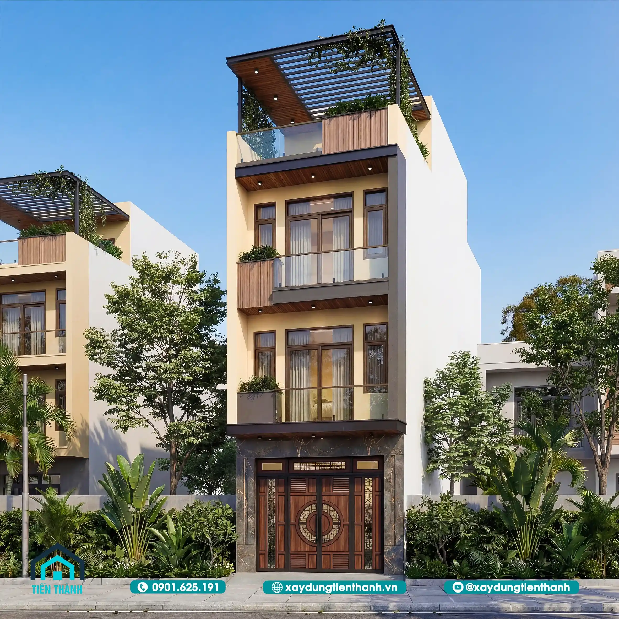 Phong cách kiến trúc hiện đại tối giản (Minimalism) kết hợp với không gian xanh (Biophilic Design) đang chiếm ưu thế. Các mẫu mặt tiền nhà 4 tầng đẹp thường tập trung vào: