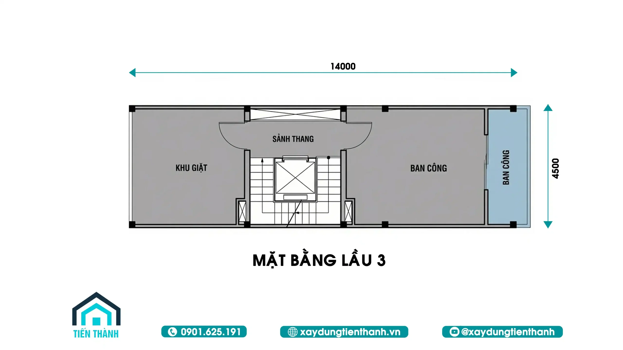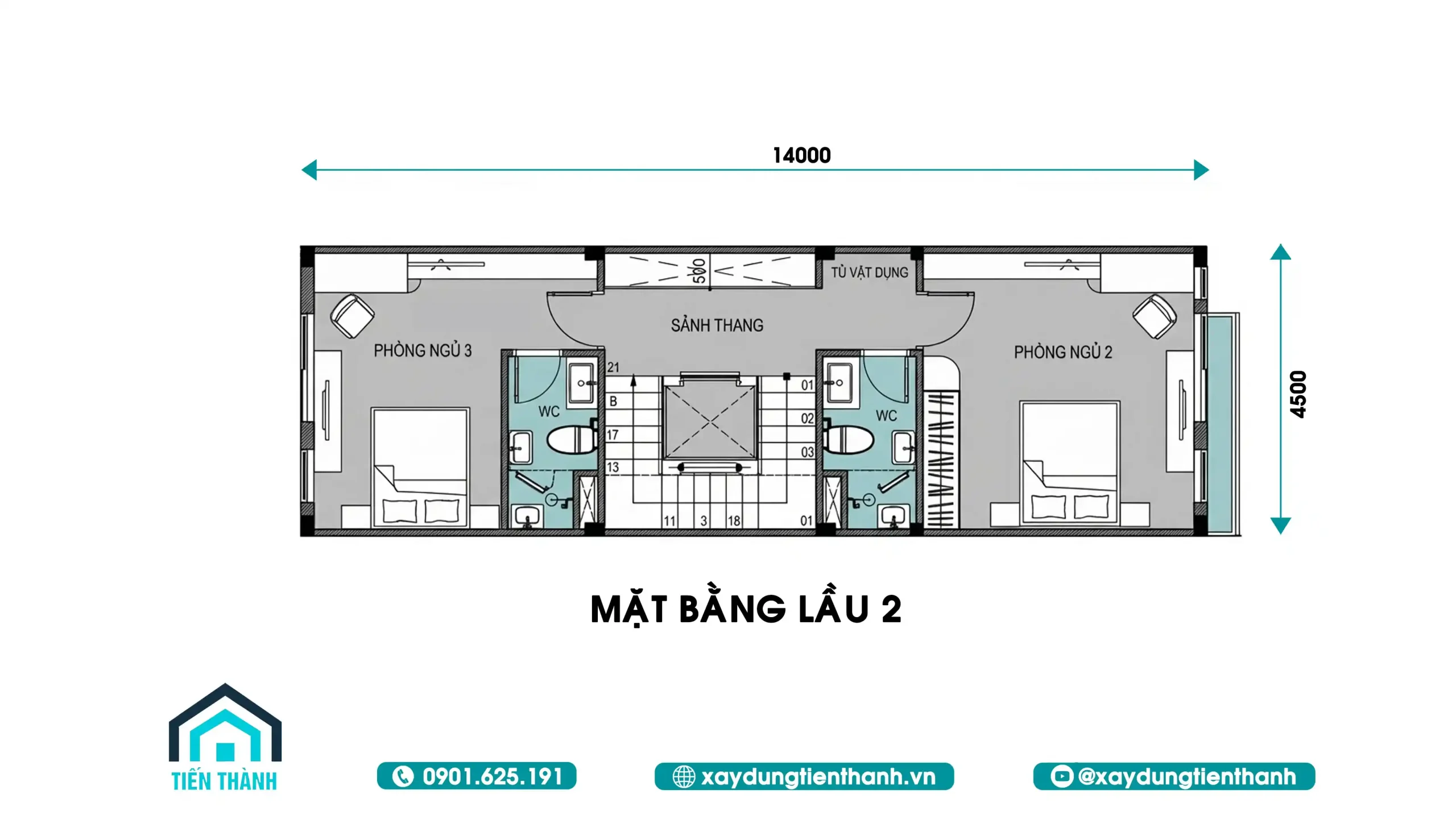 Việc bố trí mặt bằng đòi hỏi sự tính toán kỹ lưỡng để tận dụng tối đa diện tích 4.5m x 14m (phần xây dựng), đảm bảo mọi phòng ngủ đều có ánh sáng và thông tầng hợp lý.