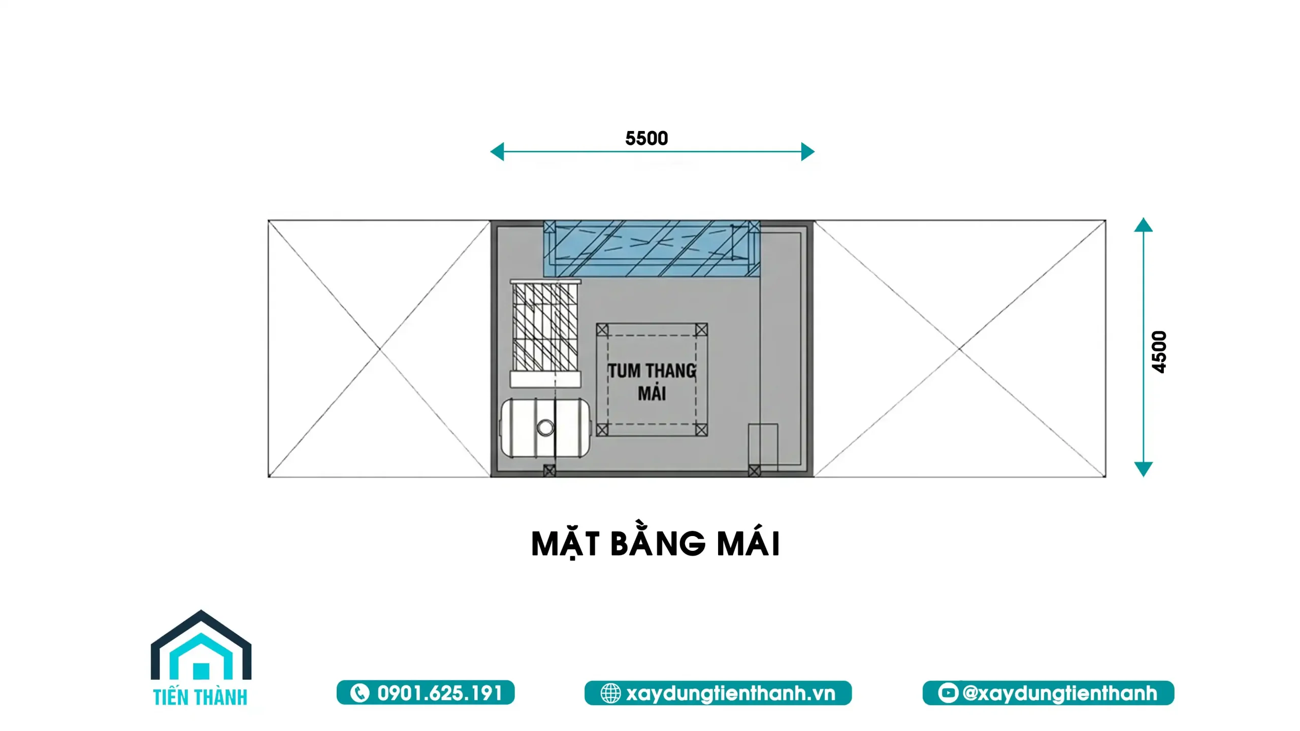 - Ban công sân thượng: Chiếm diện tích lớn phía trước. Đây chính là không gian tạo nên điểm nhấn cho mặt tiền với hệ lam gỗ và cây xanh đã phân tích ở phần 1. Gia chủ có thể biến nơi đây thành vườn trà hoặc khu vực BBQ ngoài trời.