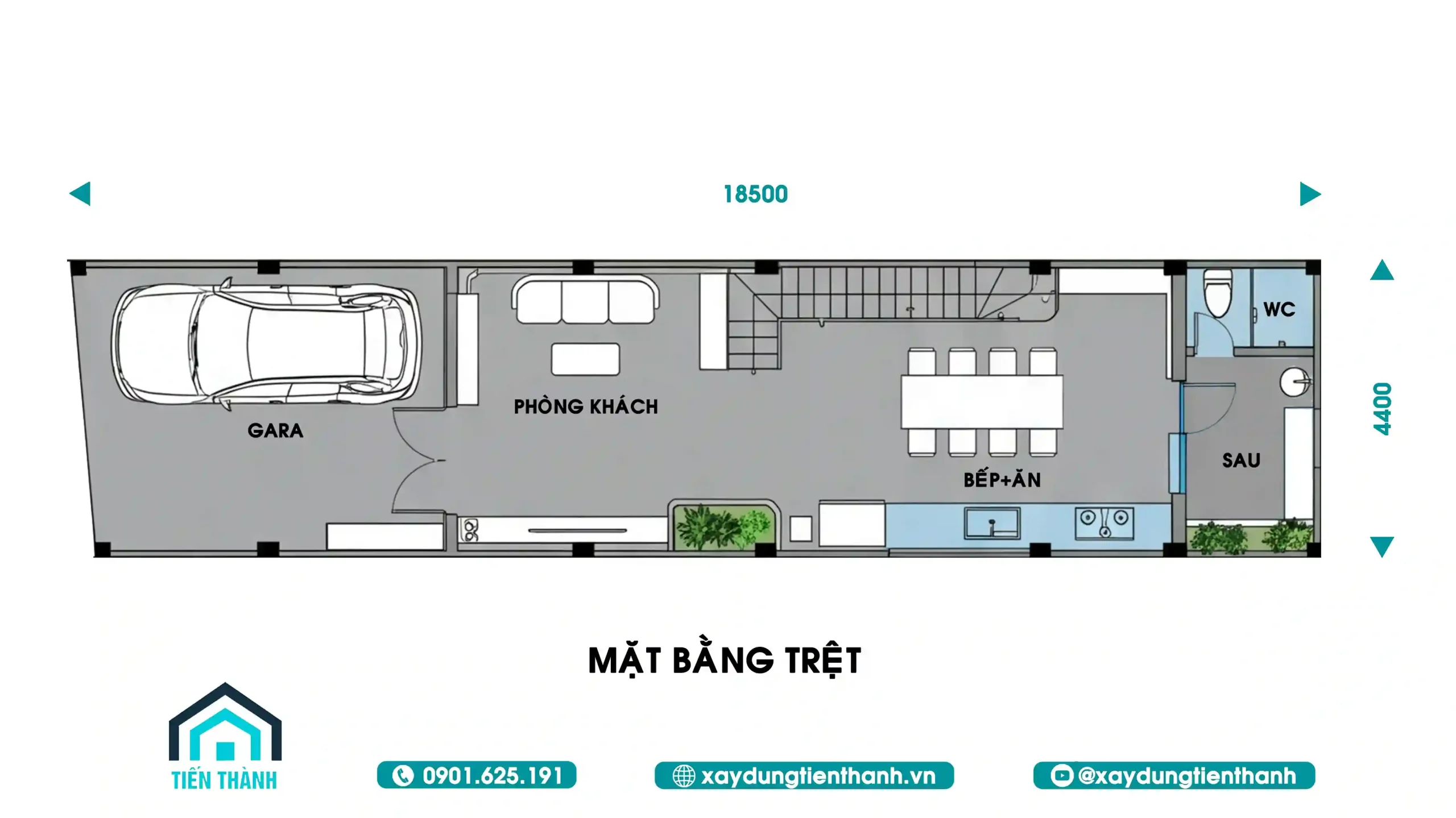 Một mặt tiền đẹp cần đi đôi với mặt bằng công năng khoa học. Với diện tích 4.4m x 18.5m, việc bố trí công năng đã được kiến trúc sư tính toán kỹ lưỡng để đảm bảo sự tiện nghi.