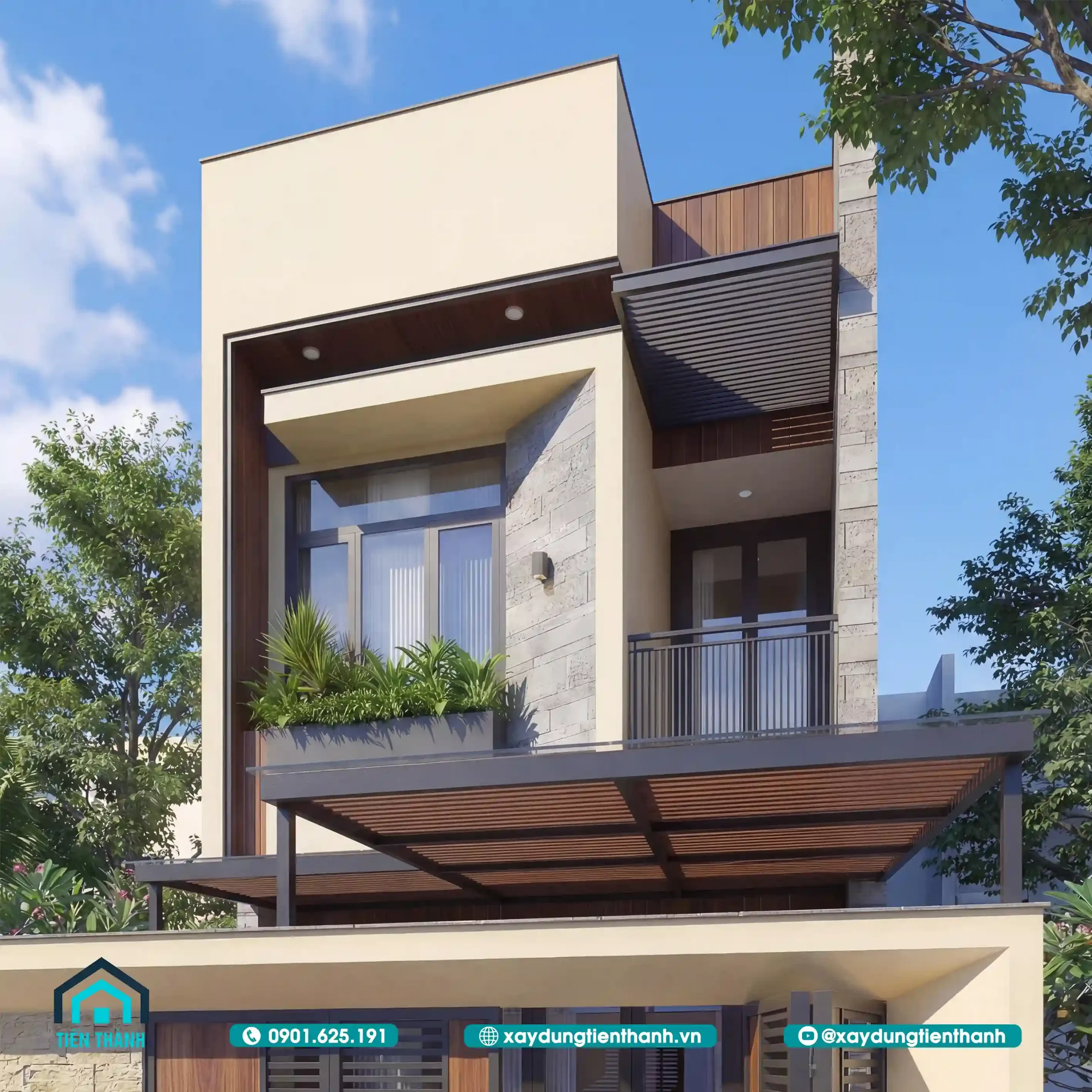 Trong năm 2026, xu hướng màu sắc cho mặt tiền nhà phố 5m 2 tầng hướng tới sự mộc mạc và gần gũi với thiên nhiên. Các tông màu như vàng cát, kem, xám đá kết hợp với màu nâu của gỗ không bao giờ lỗi mốt.