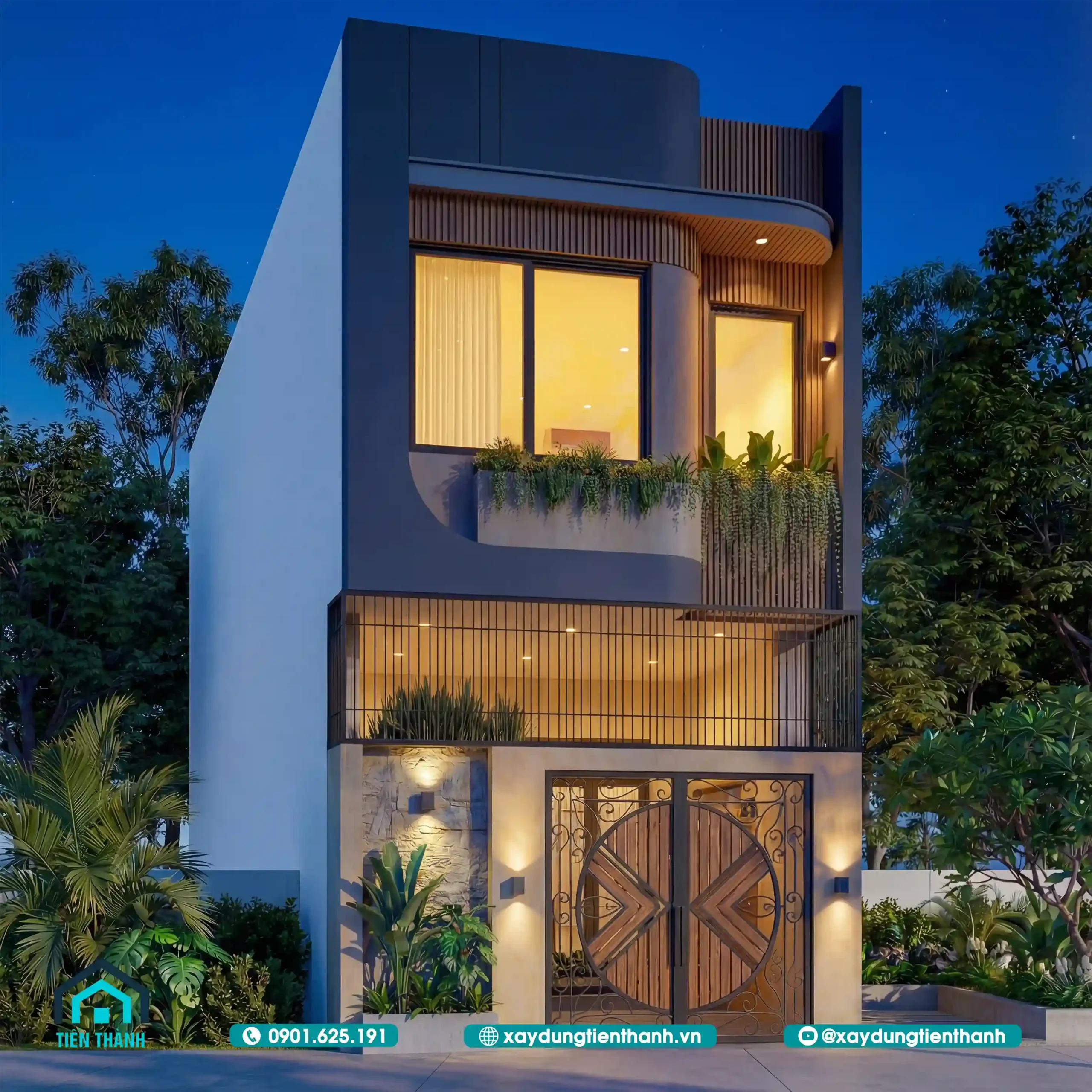 Mẫu nhà 2 tầng 5mx20m với thiết kế bo cong tinh tế và hệ thống cây xanh tích hợp thực sự là không gian sống lý tưởng cho cư dân đô thị hiện đại. Nó không chỉ đáp ứng đủ công năng cho gia đình từ 3-5 thành viên mà còn thể hiện được gu thẩm mỹ độc đáo của gia chủ.