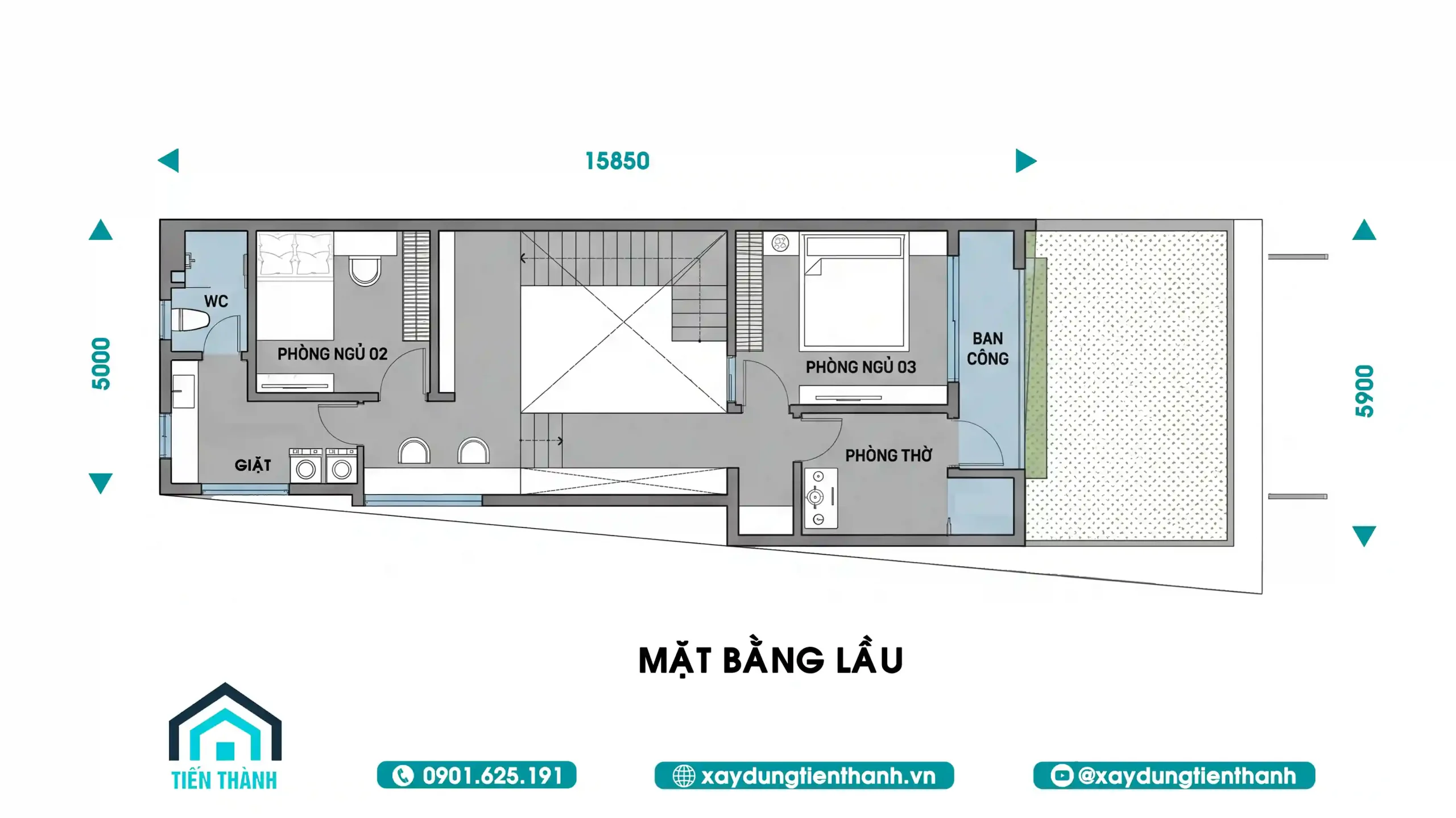 - Phòng ngủ 02 & 03: Được bố trí đối xứng qua khu vực cầu thang và thông tầng, đảm bảo lấy sáng tự nhiên tốt.
