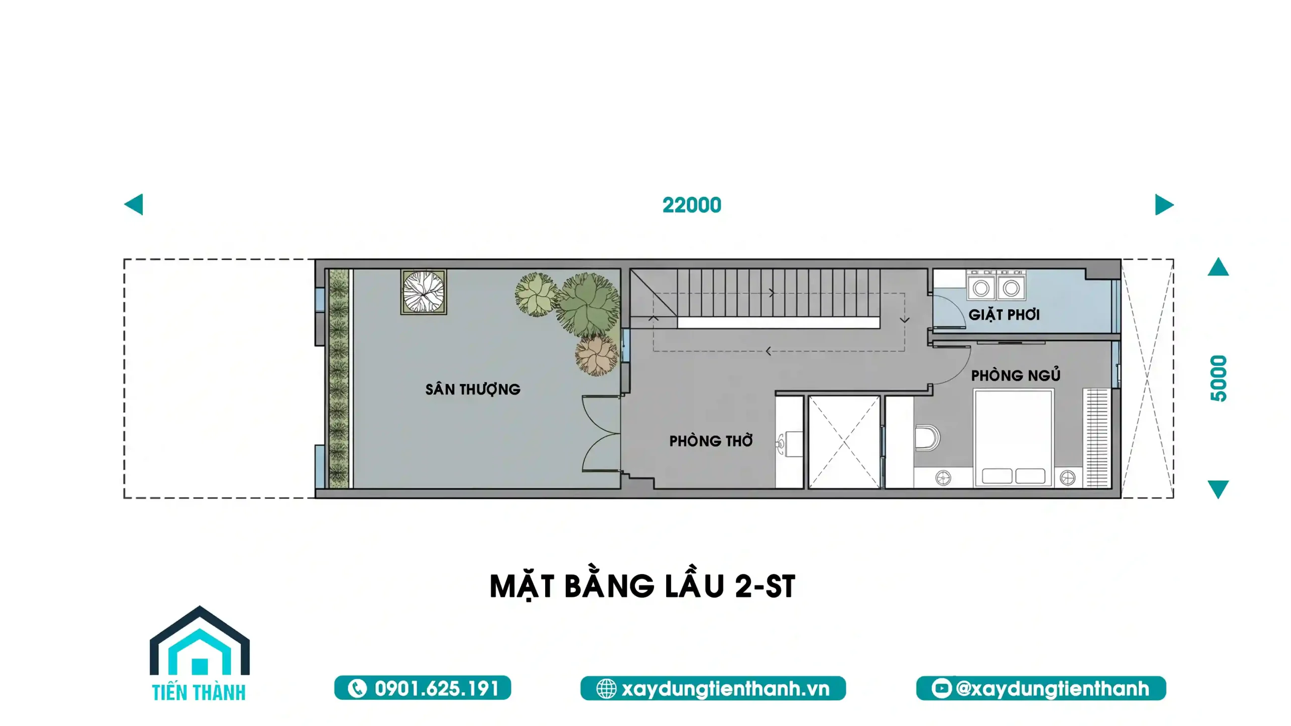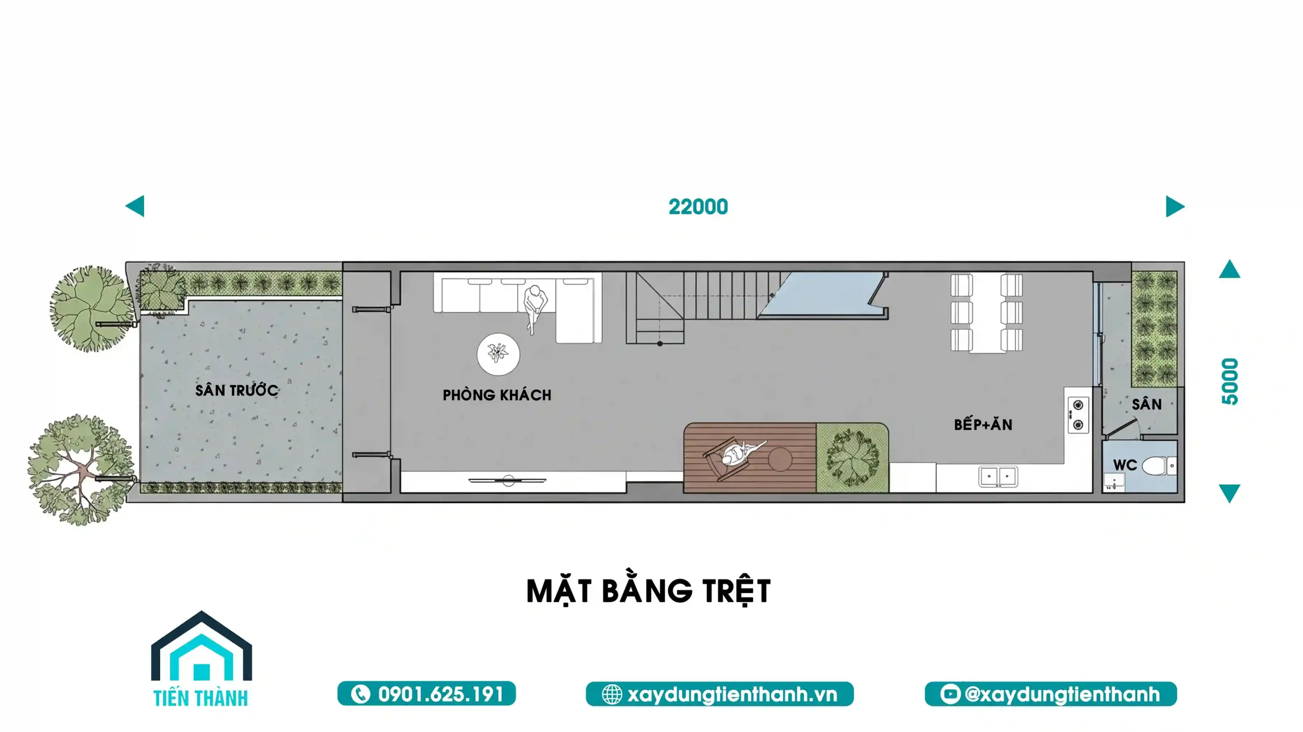 3.Bản vẽ công năng chi tiết diện tích 5x22m