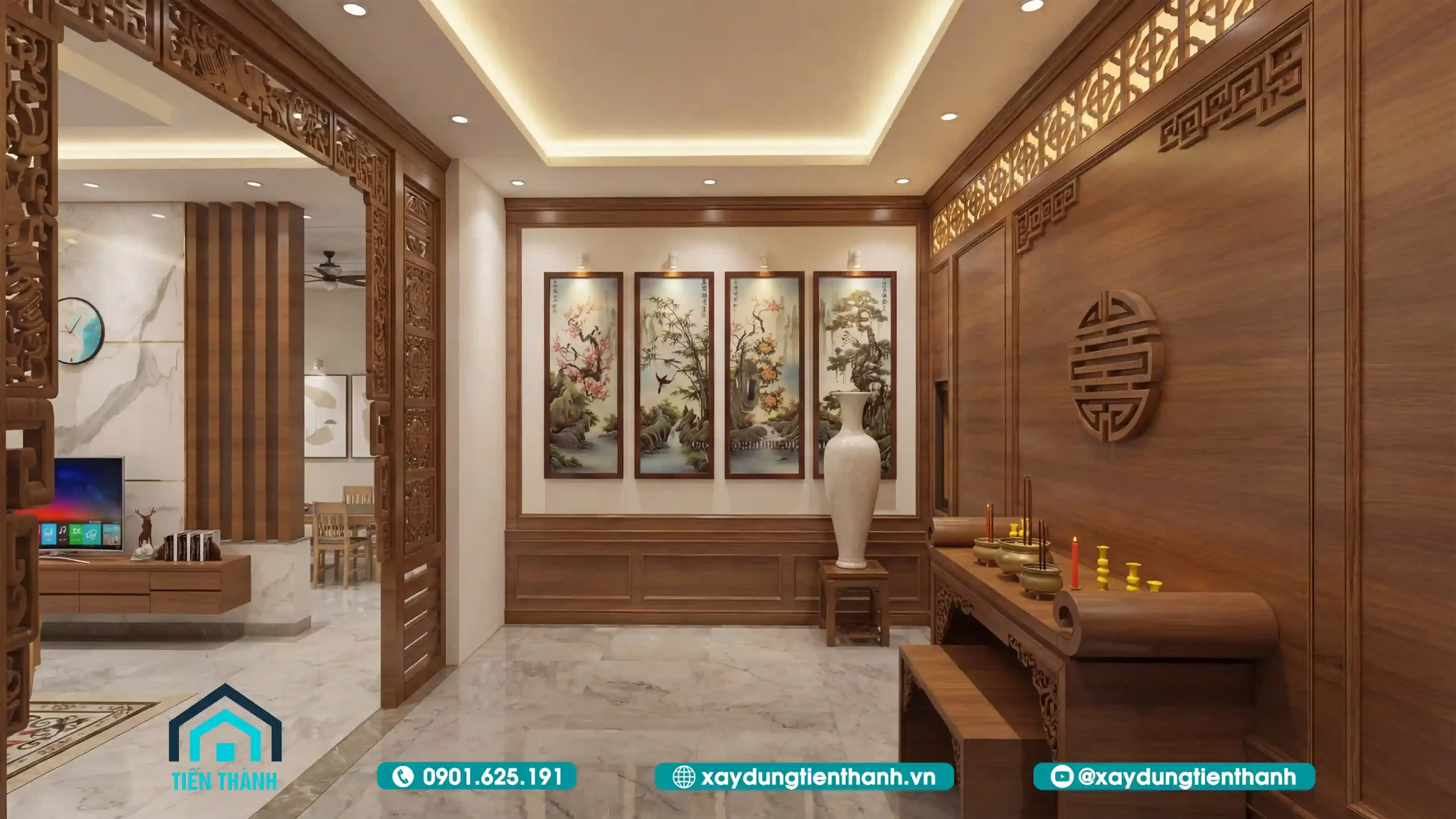 Sự liên kết tinh tế giữa phòng khách và không gian thờ tự phía sau.