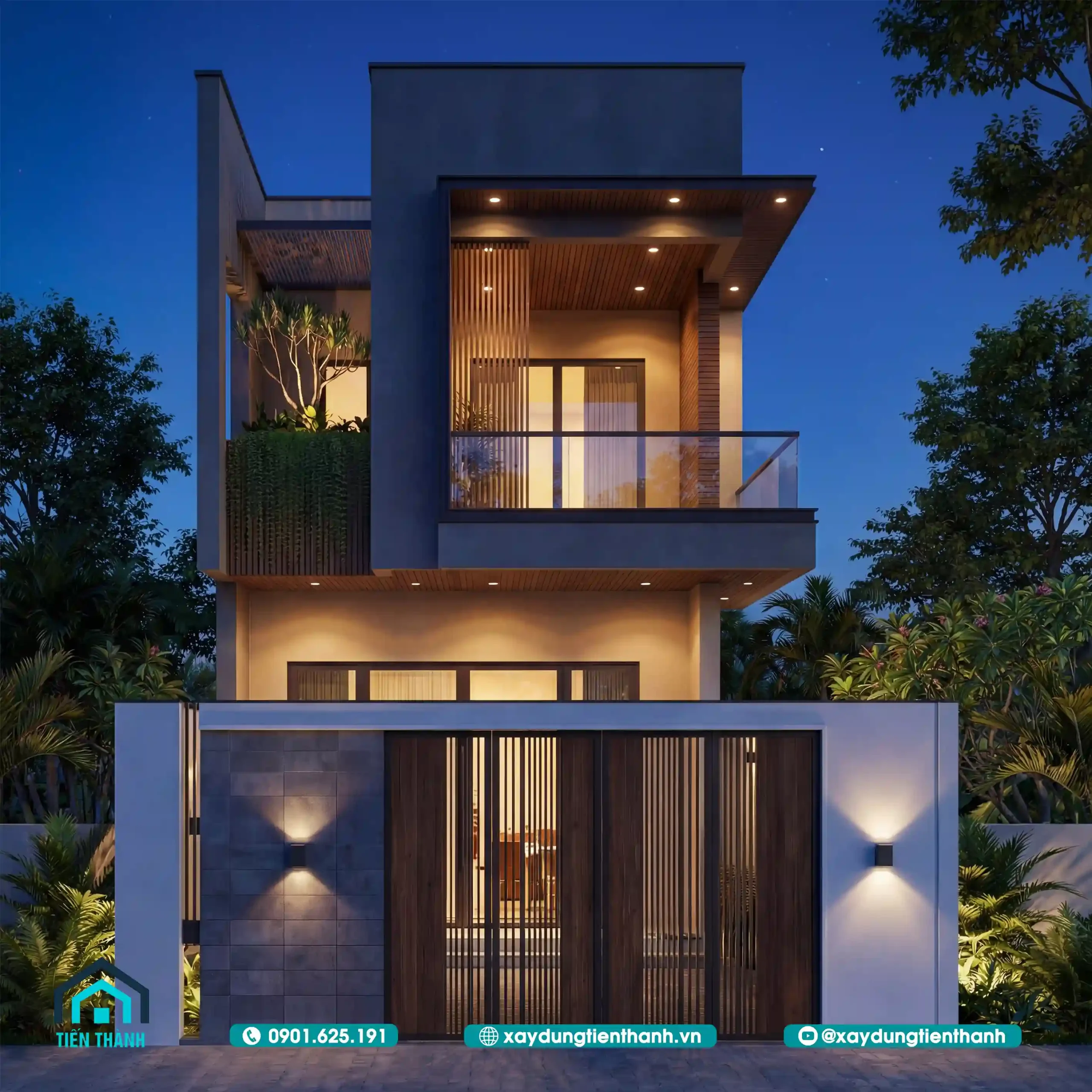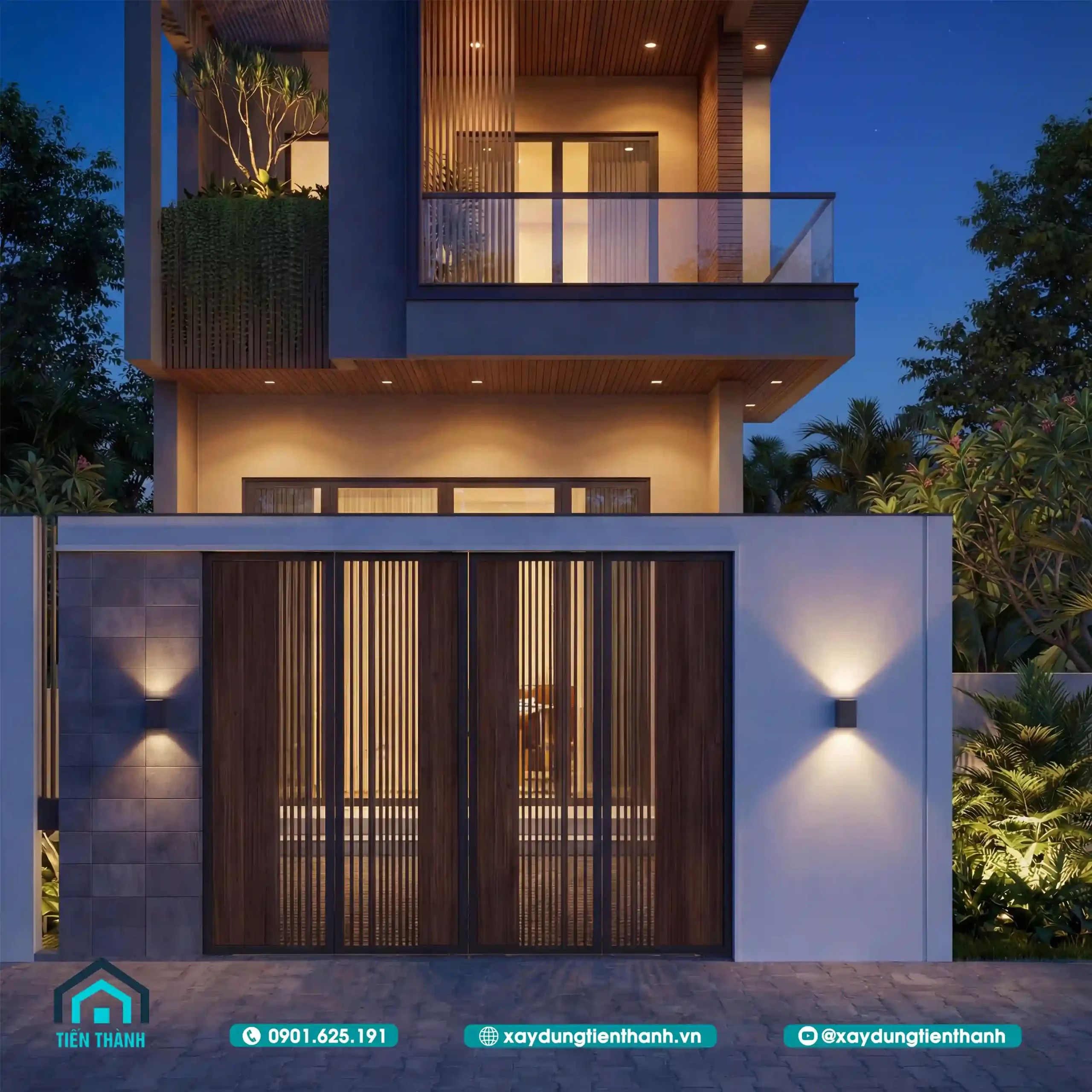 Ánh sáng là “ngôn ngữ” thứ hai của kiến trúc. Đối với một mẫu nhà mặt tiền 6m 2 tầng, việc thiết kế hệ thống chiếu sáng ngoại thất không chỉ giúp đảm bảo an ninh mà còn tôn vinh những đường nét sang trọng của ngôi nhà khi bóng tối buông xuống.