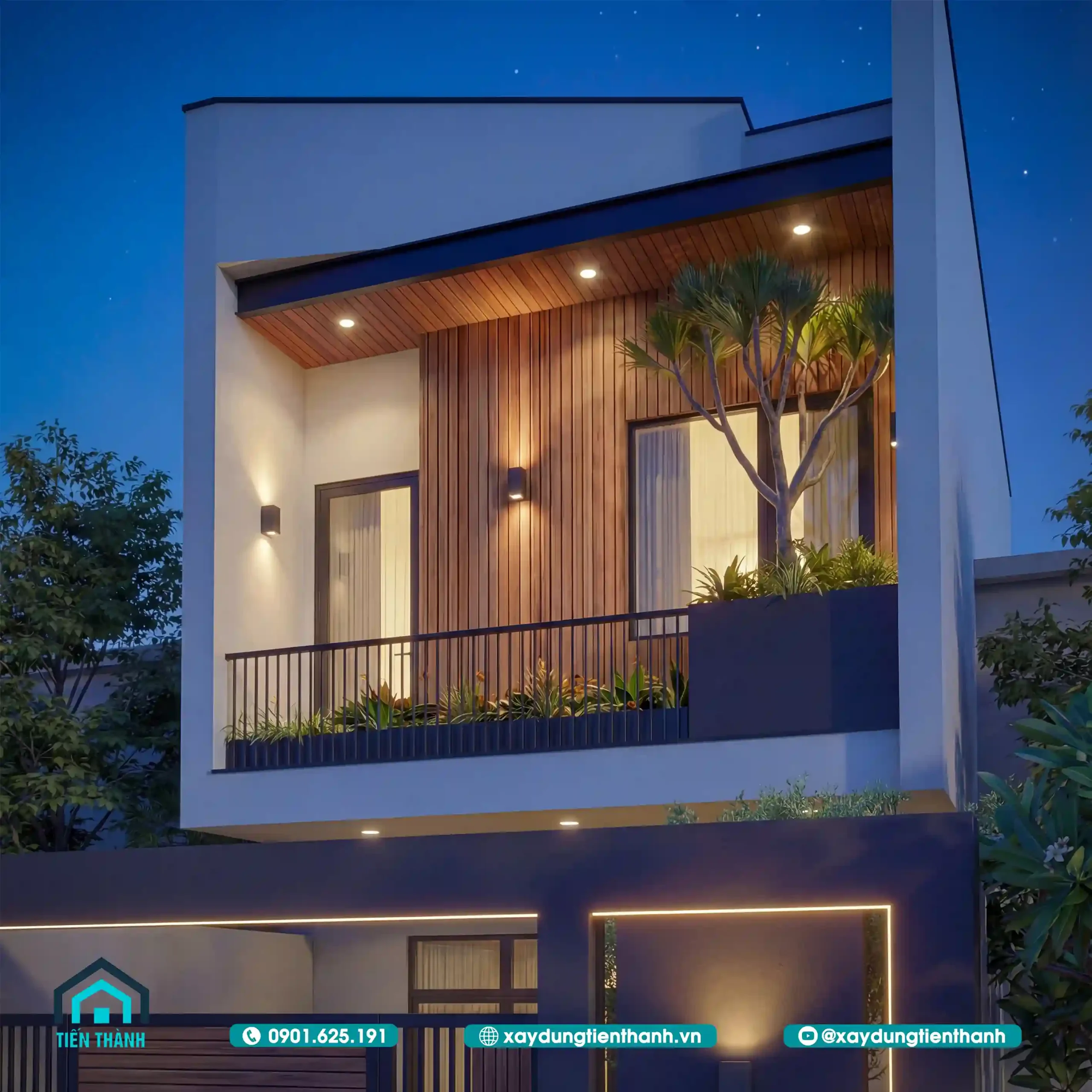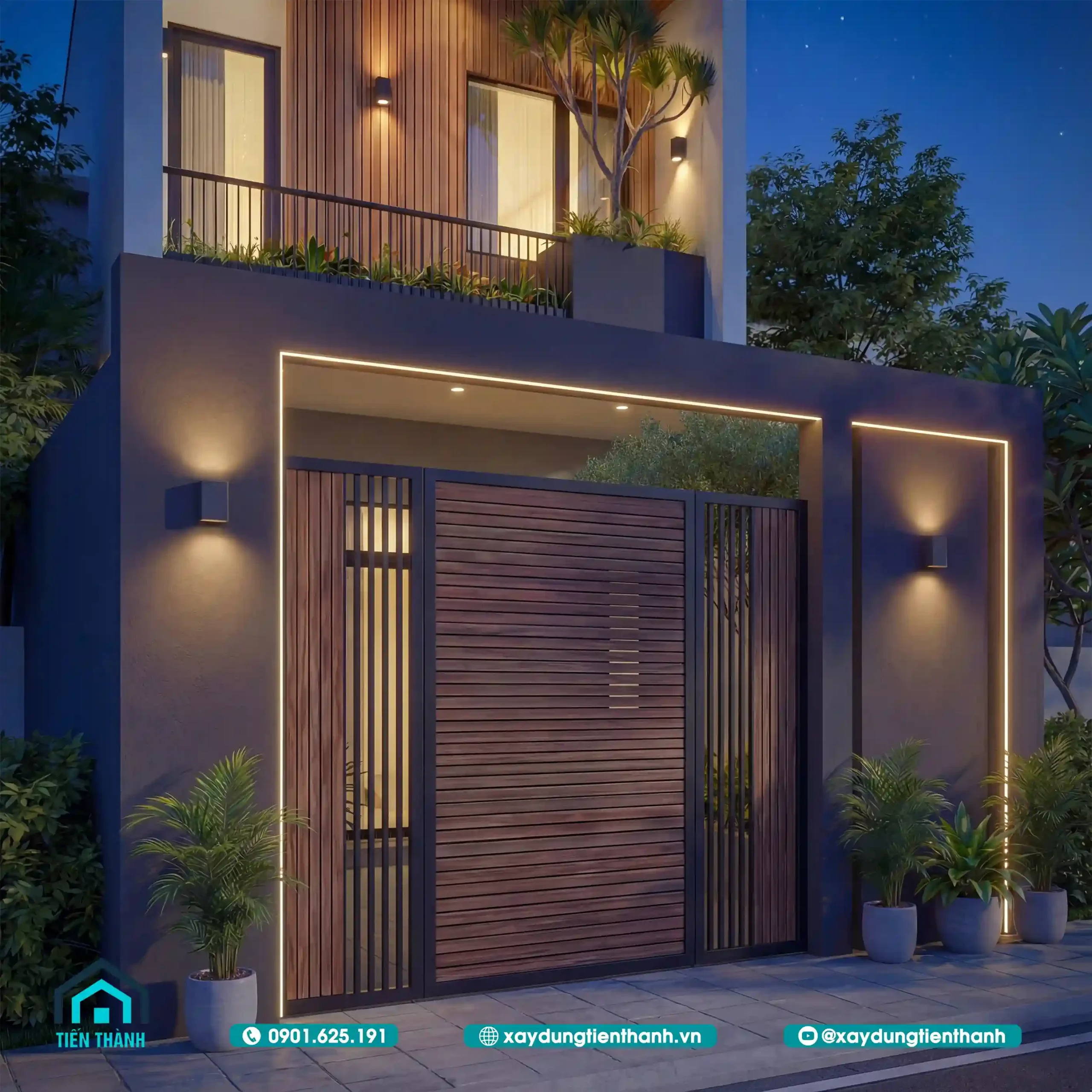 Ánh sáng đóng vai trò quan trọng trong việc nâng tầm vẻ đẹp kiến trúc. Đối với các mẫu nhà ống 2 tầng mặt tiền 5m đẹp, việc bố trí đèn ngoại thất khéo léo sẽ giúp ngôi nhà nổi bật giữa phố thị khi màn đêm buông xuống.