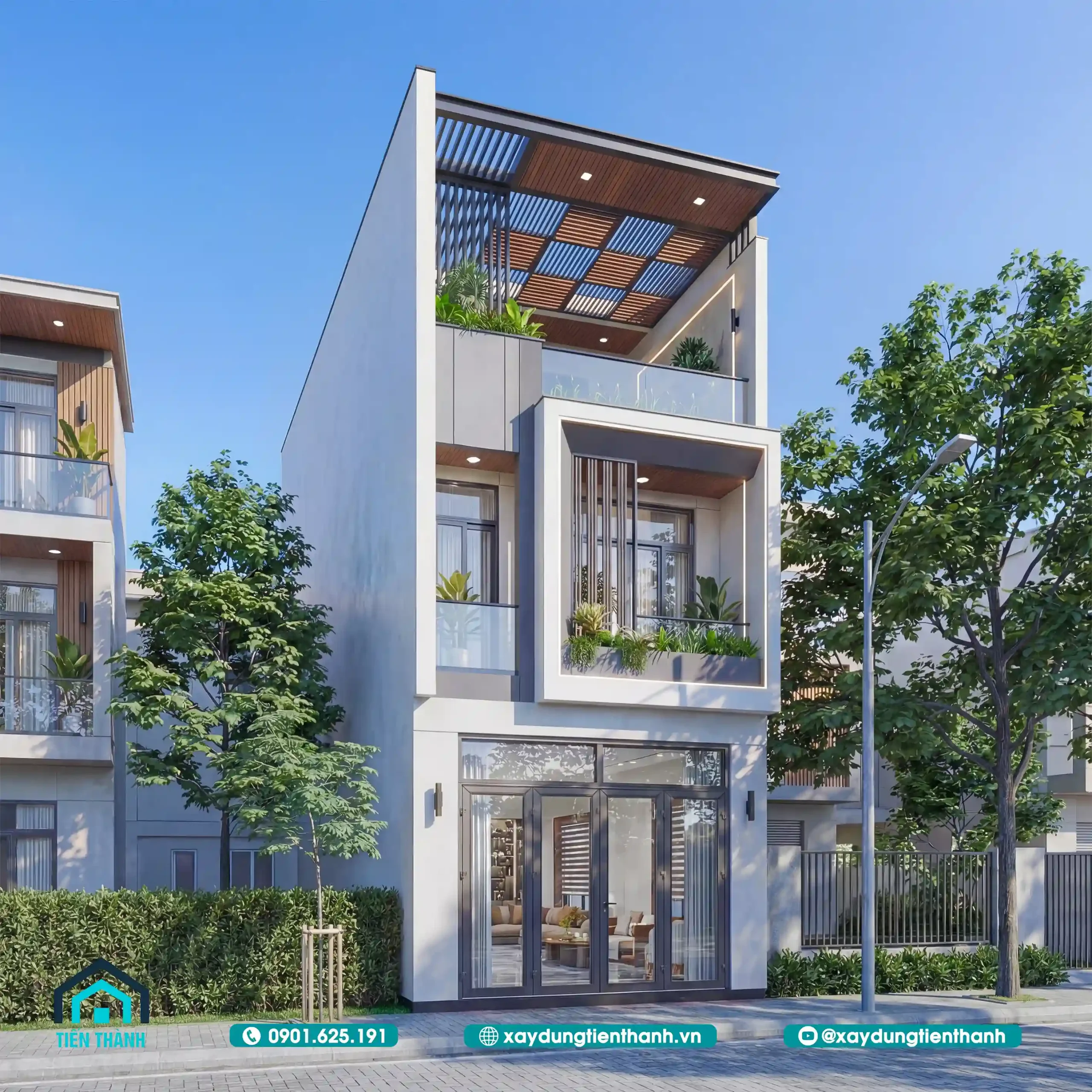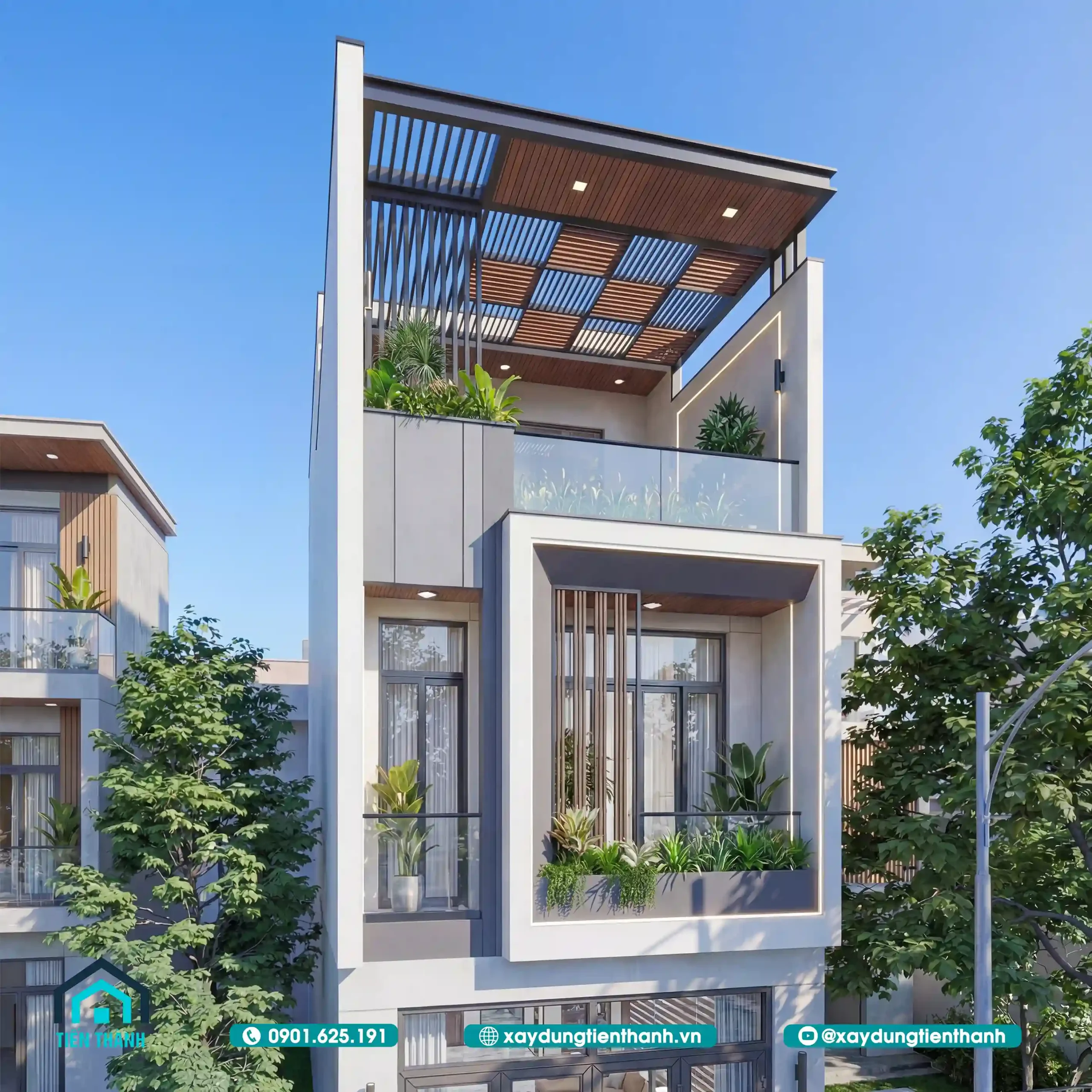 1.Phối cảnh ngoại thất mẫu nhà ống 3 tầng mặt tiền 5m 18m đầy ấn tượng