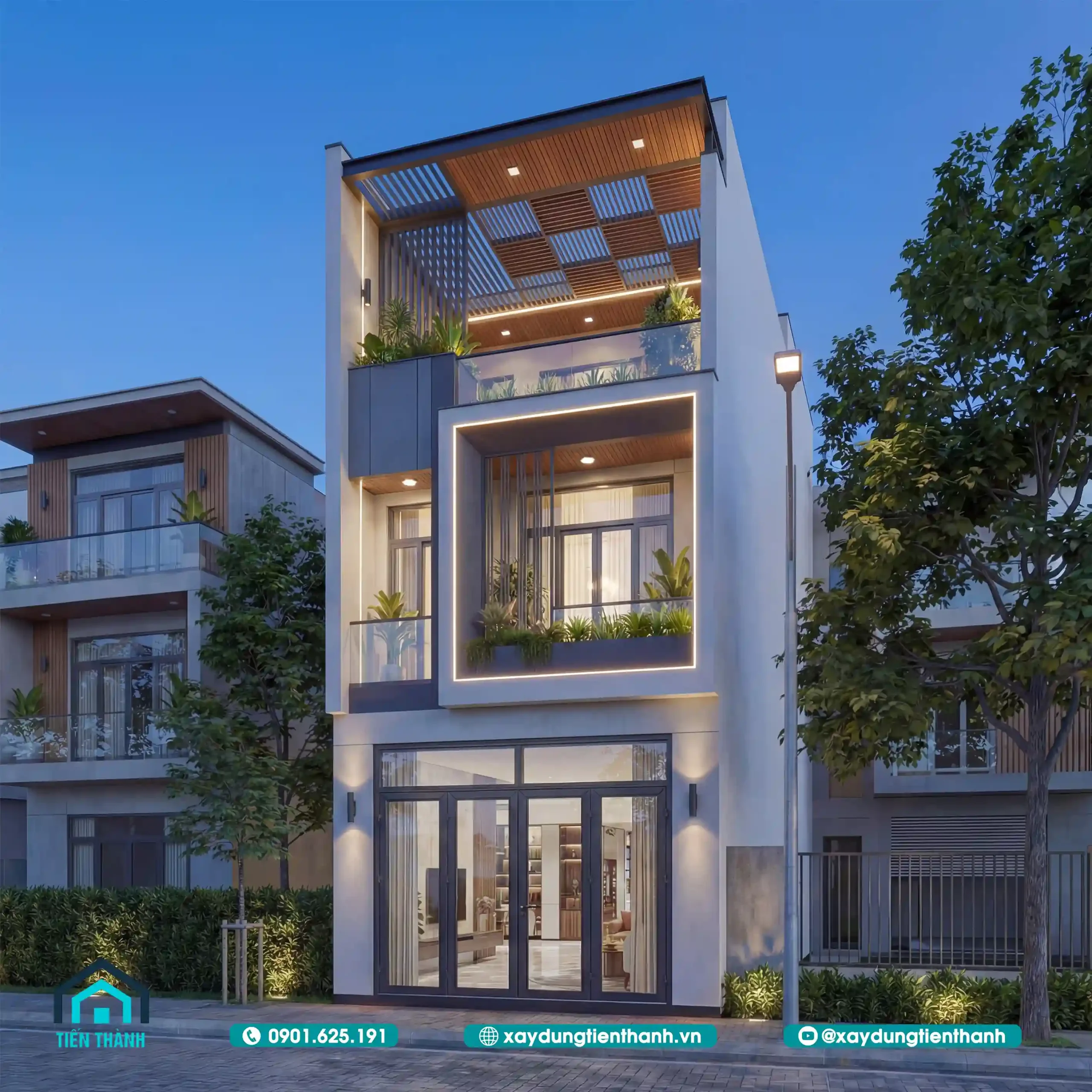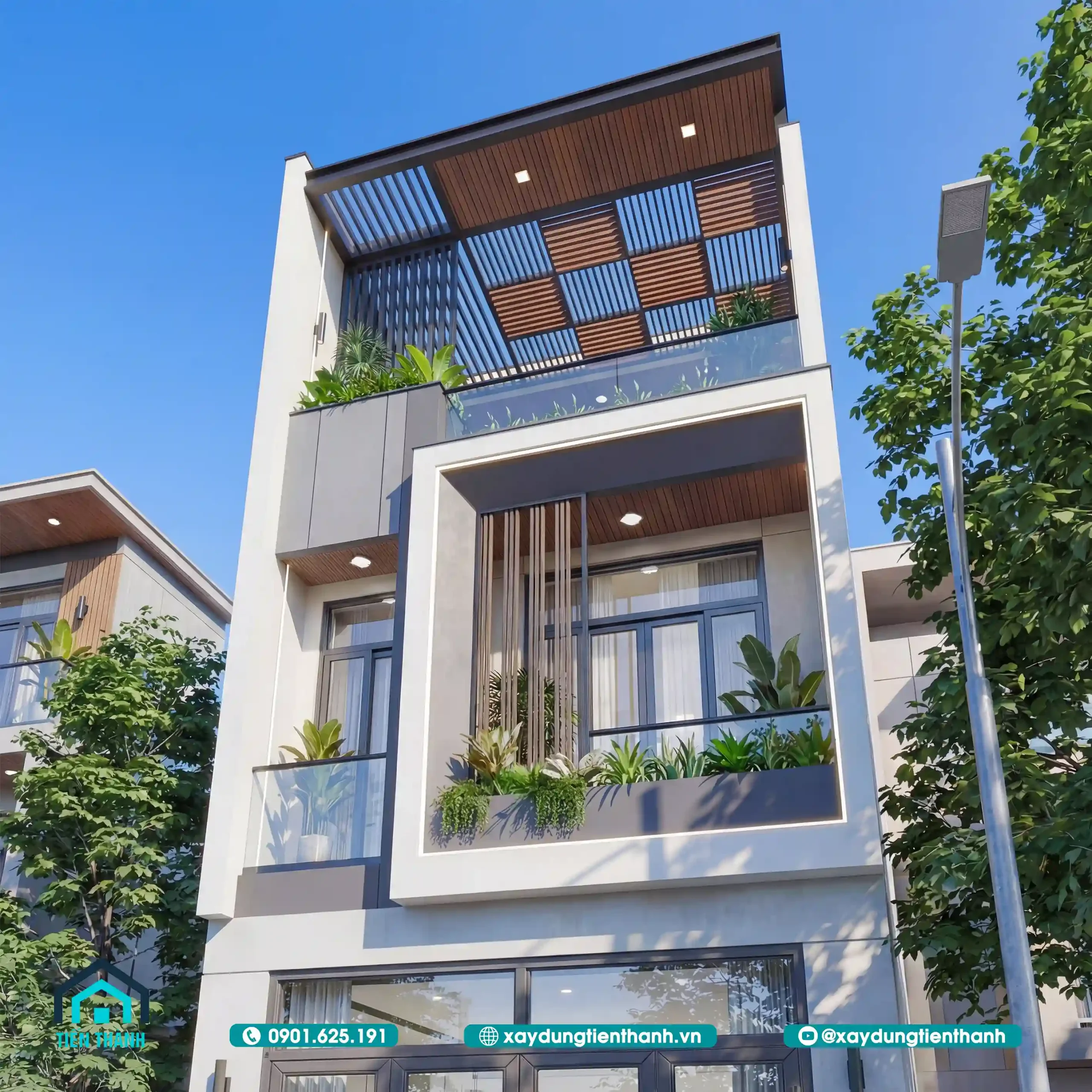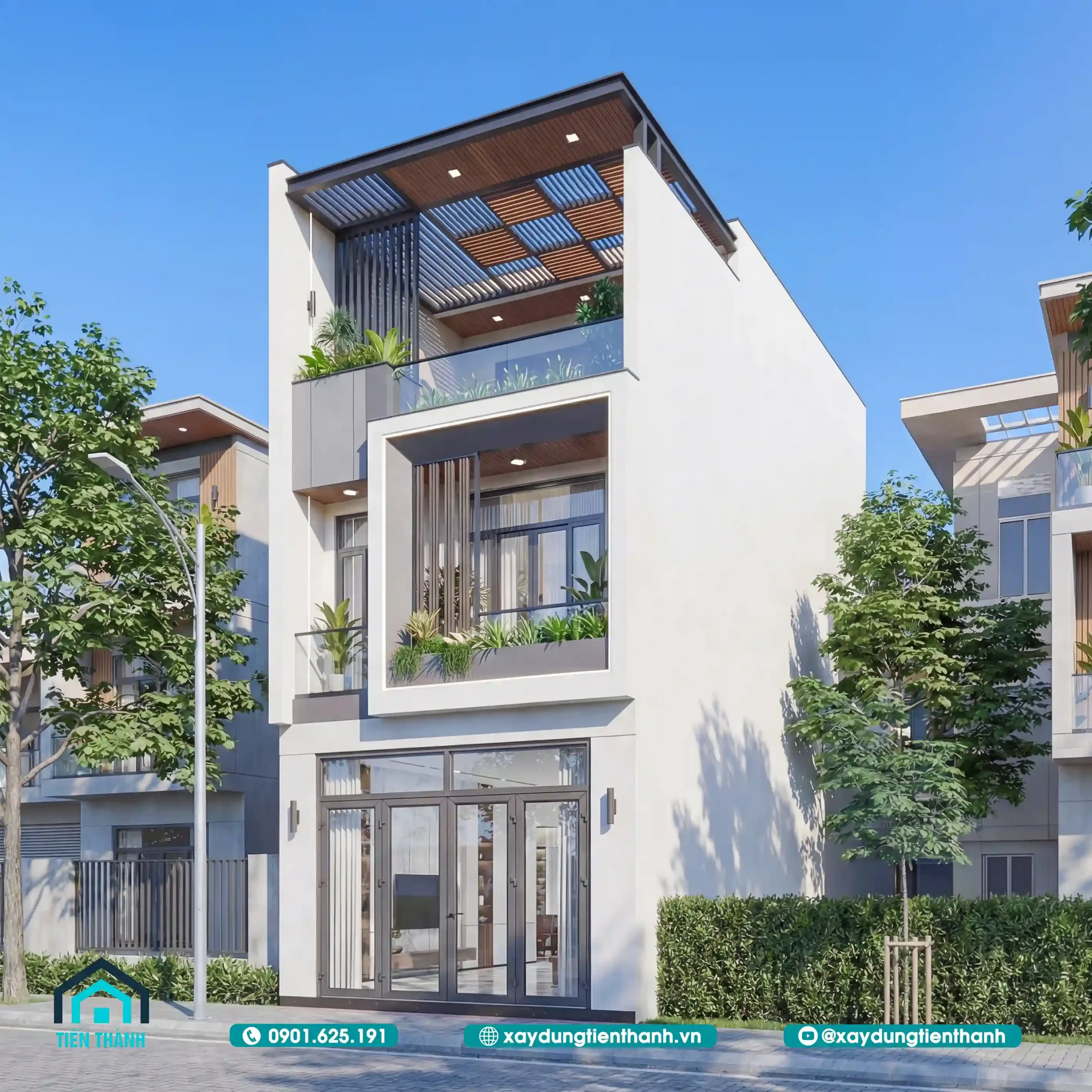 - 1 1.Phối cảnh ngoại thất mẫu nhà ống 3 tầng mặt tiền 5m 18m đầy ấn tượng