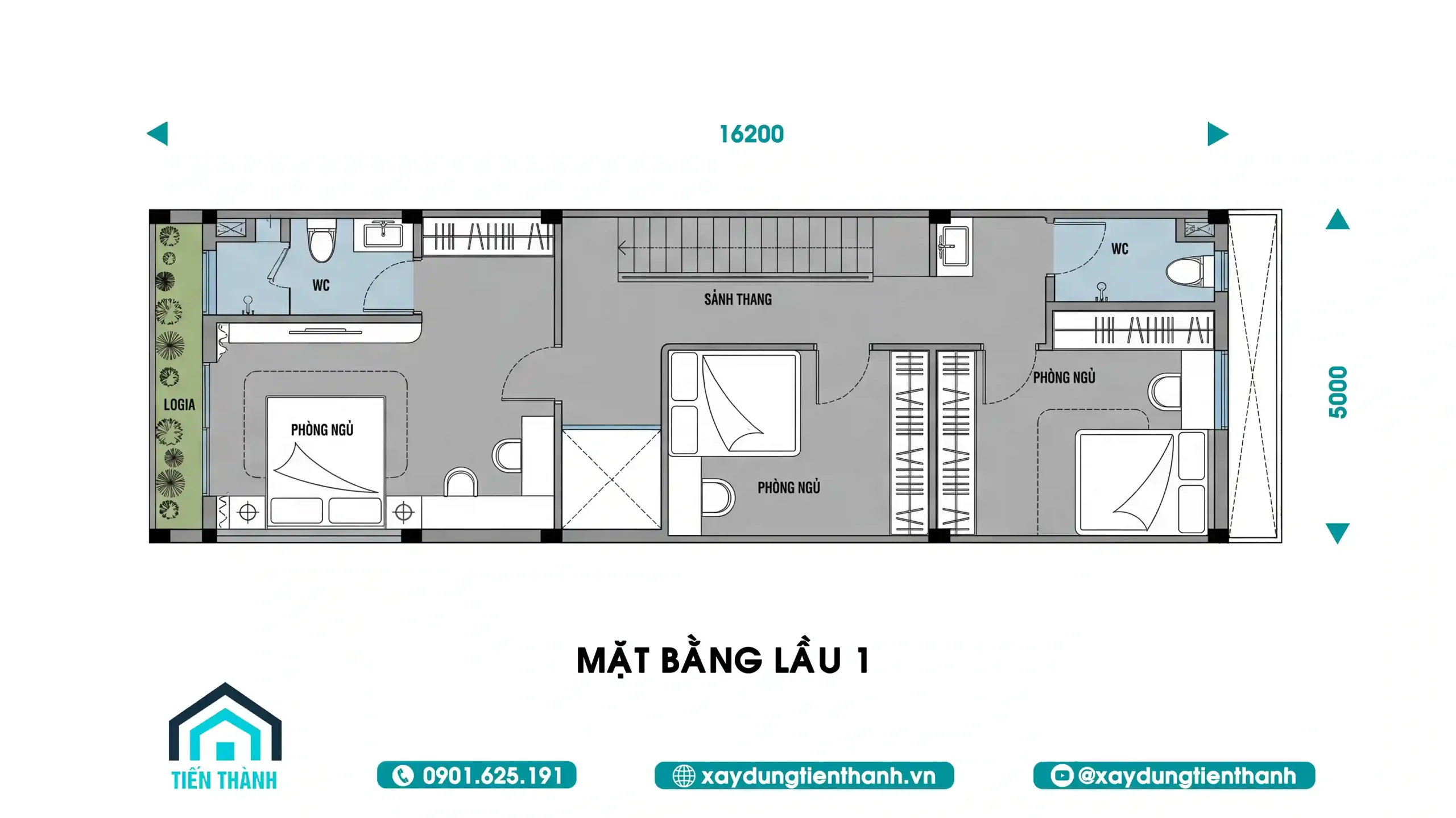 Lầu 1 là khu vực dành riêng cho việc nghỉ ngơi với 03 phòng ngủ được bố trí khoa học quanh sảnh thang.