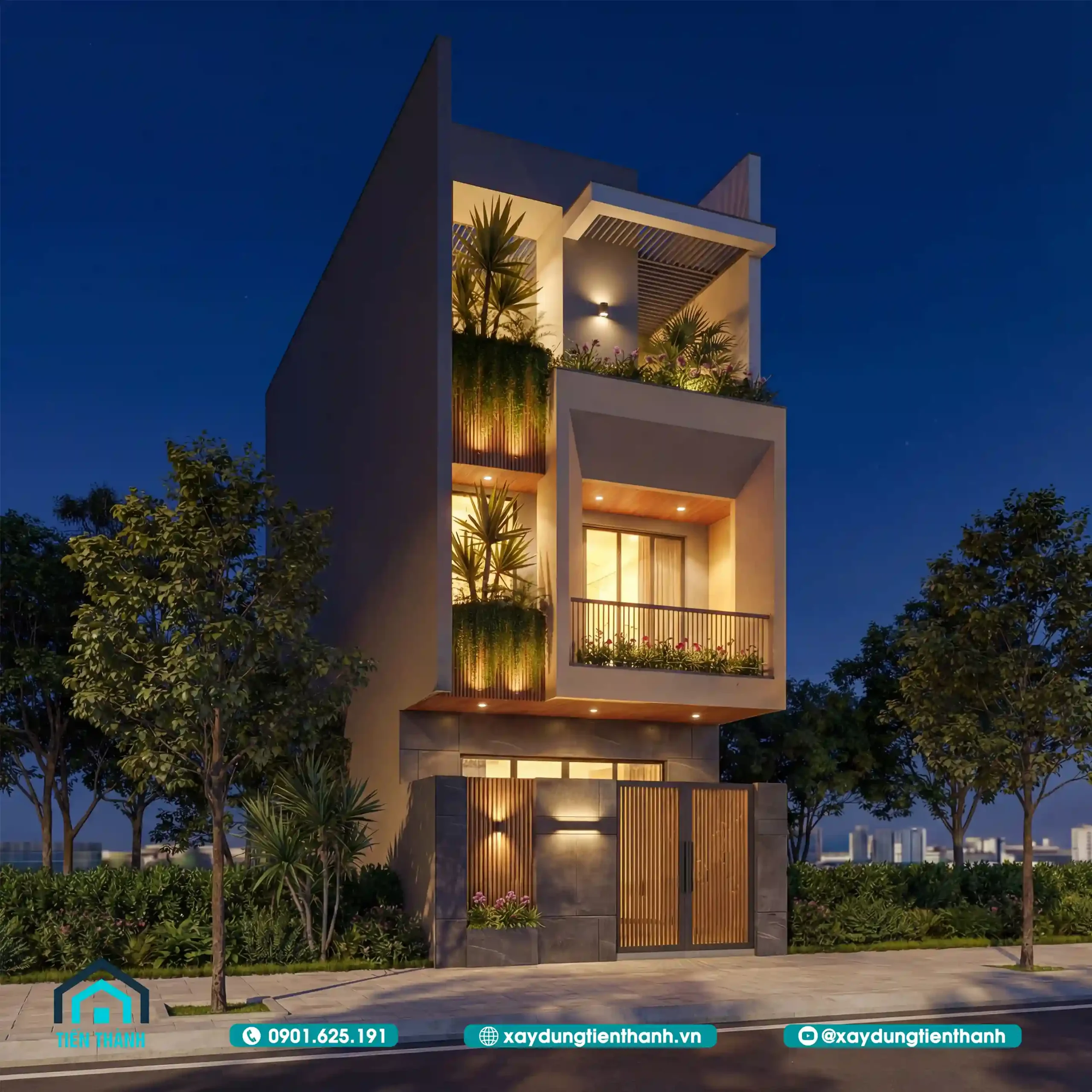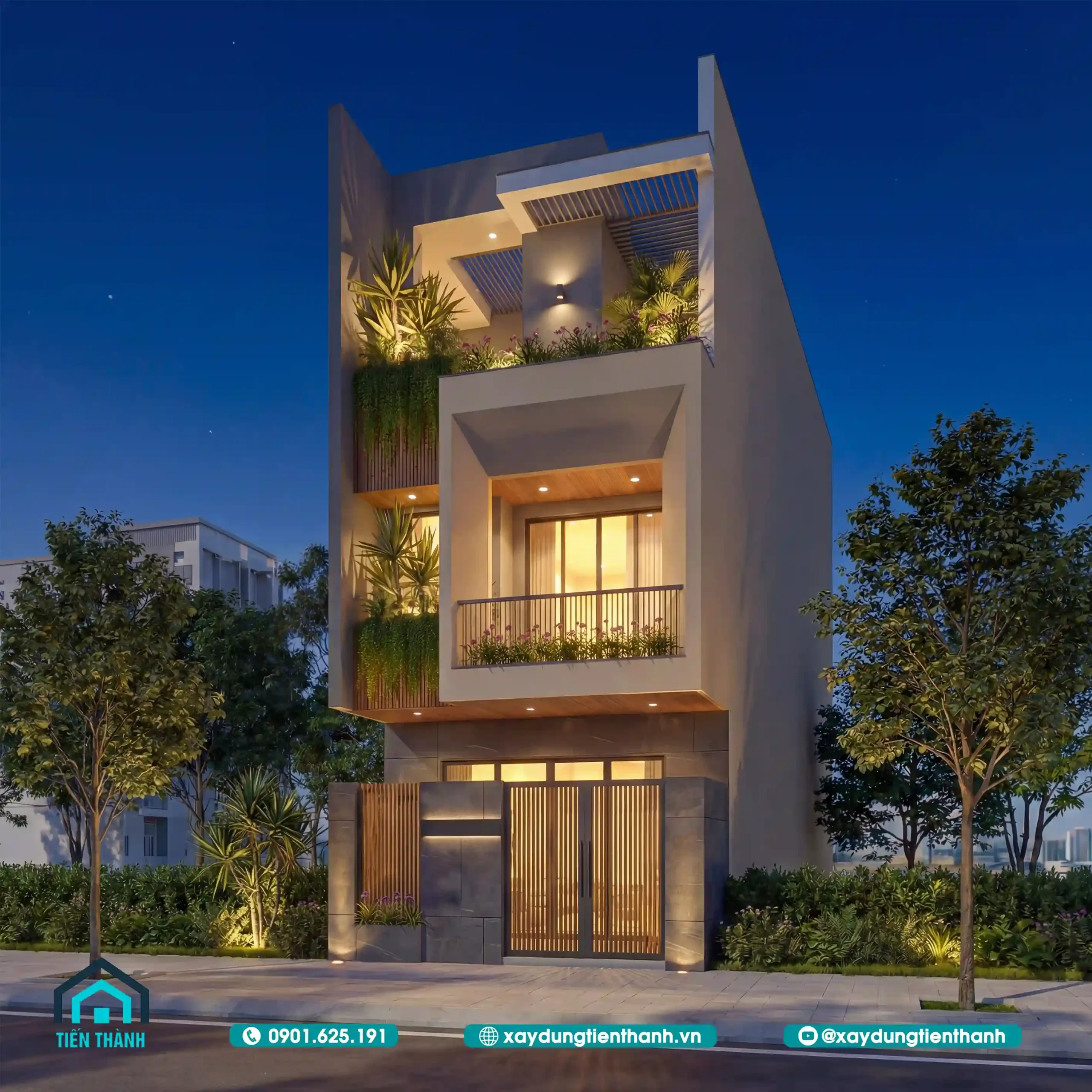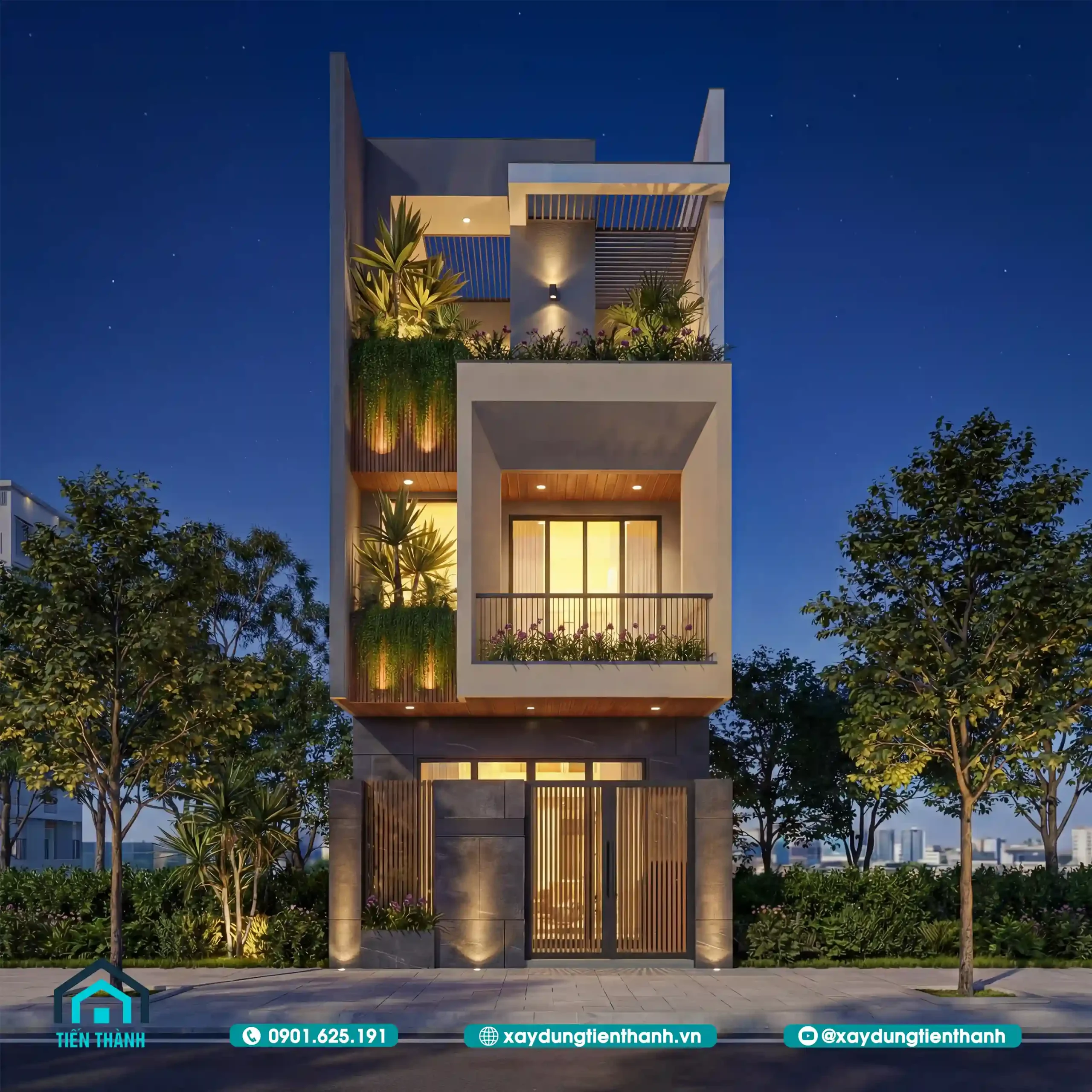 - 4 4.Nghệ thuật ánh sáng: Sự lột xác của mẫu nhà vuông 3 tầng đẹp khi đêm về