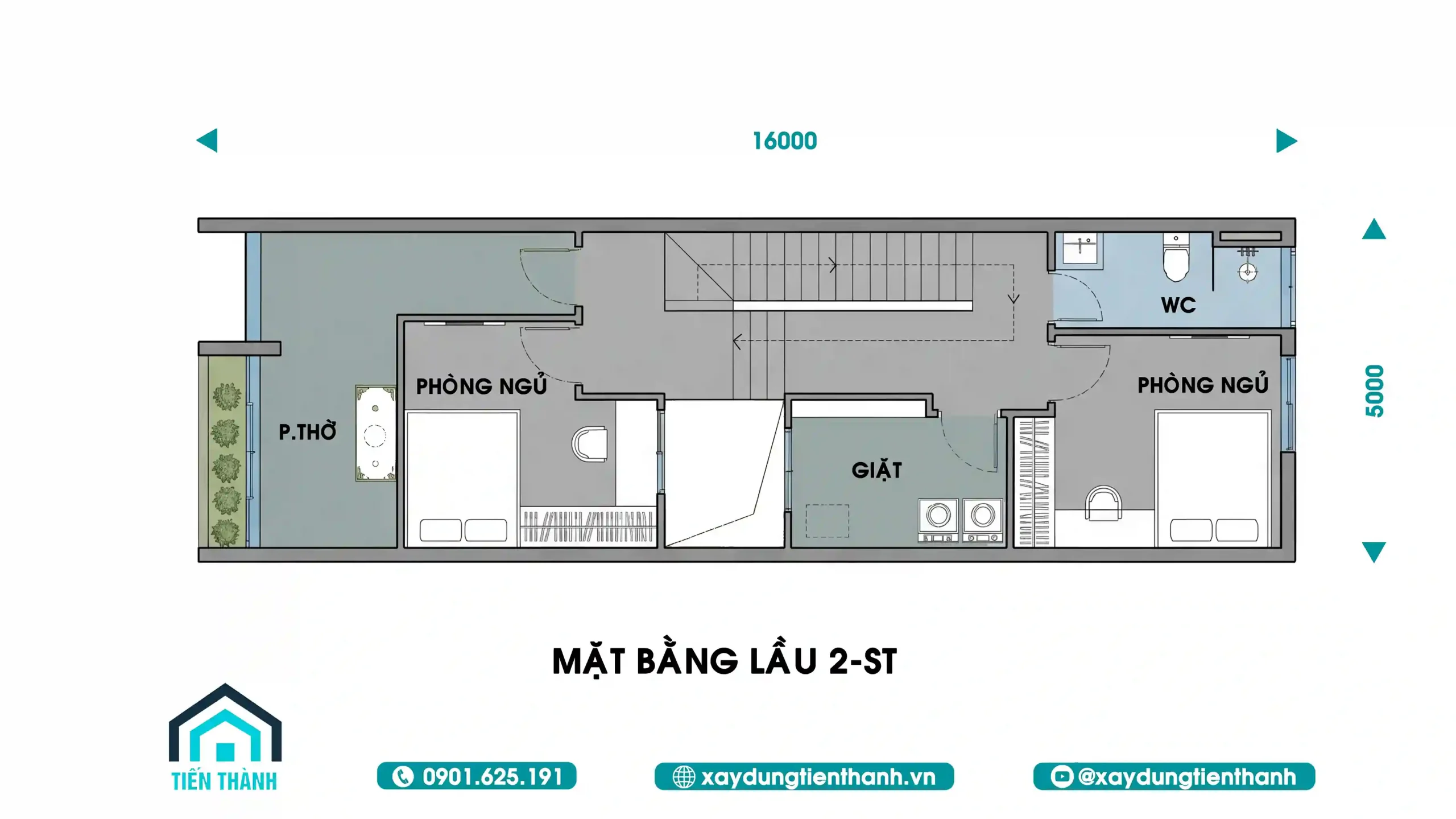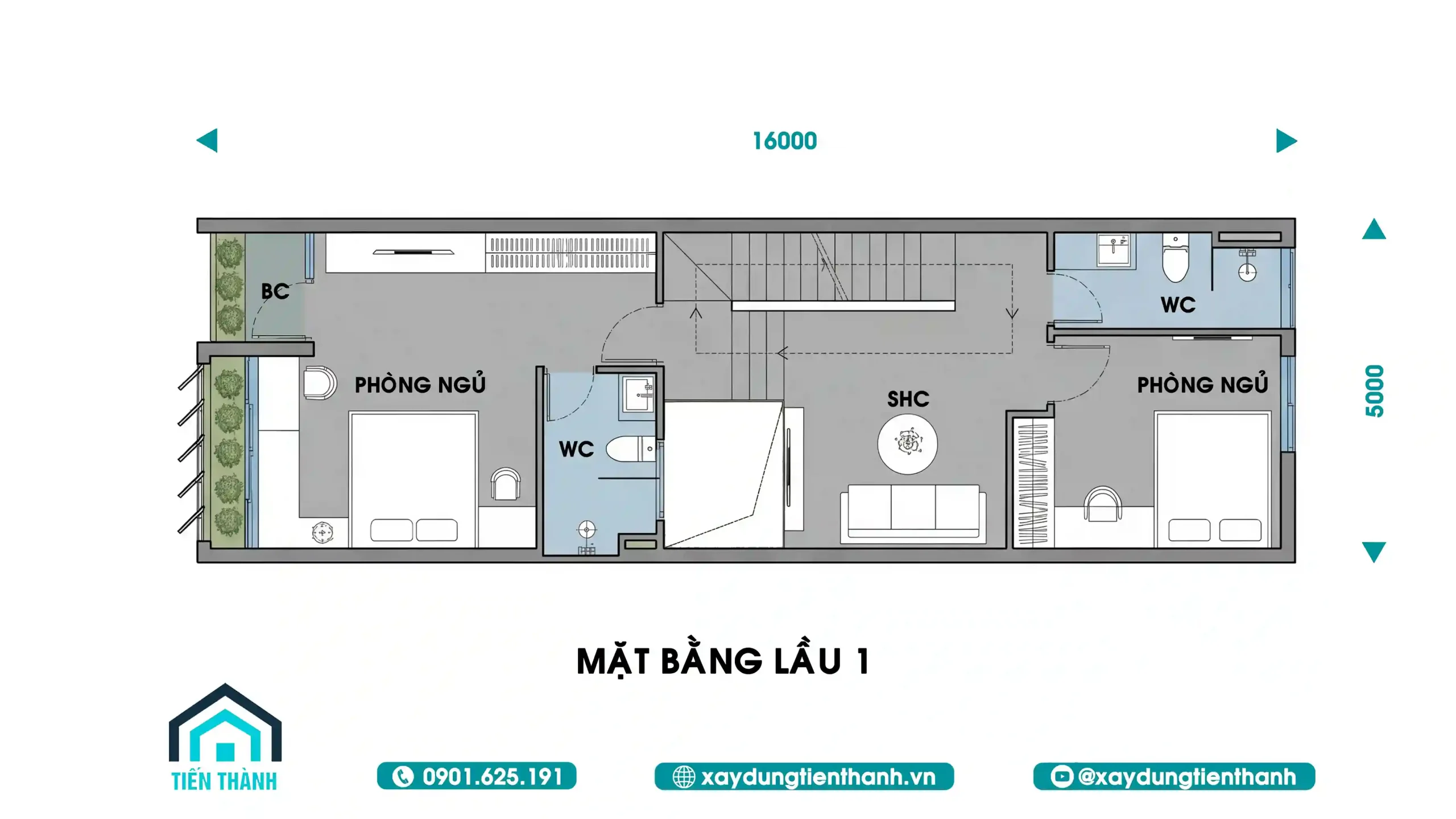 - 2 2.Bản vẽ mặt bằng công năng chi tiết – Mẫu thiết kế nhà 3 tầng 5x16m