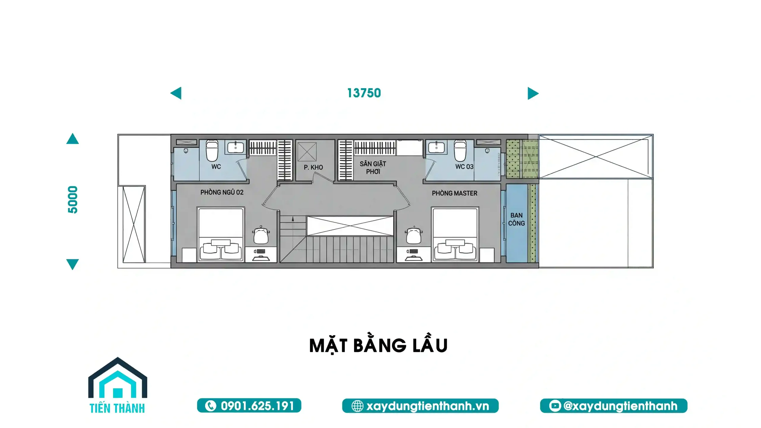 - Phòng Master: Nằm phía trước nhà, có ban công riêng và nhà vệ sinh khép kín, ưu tiên diện tích lớn nhất cho gia chủ.
