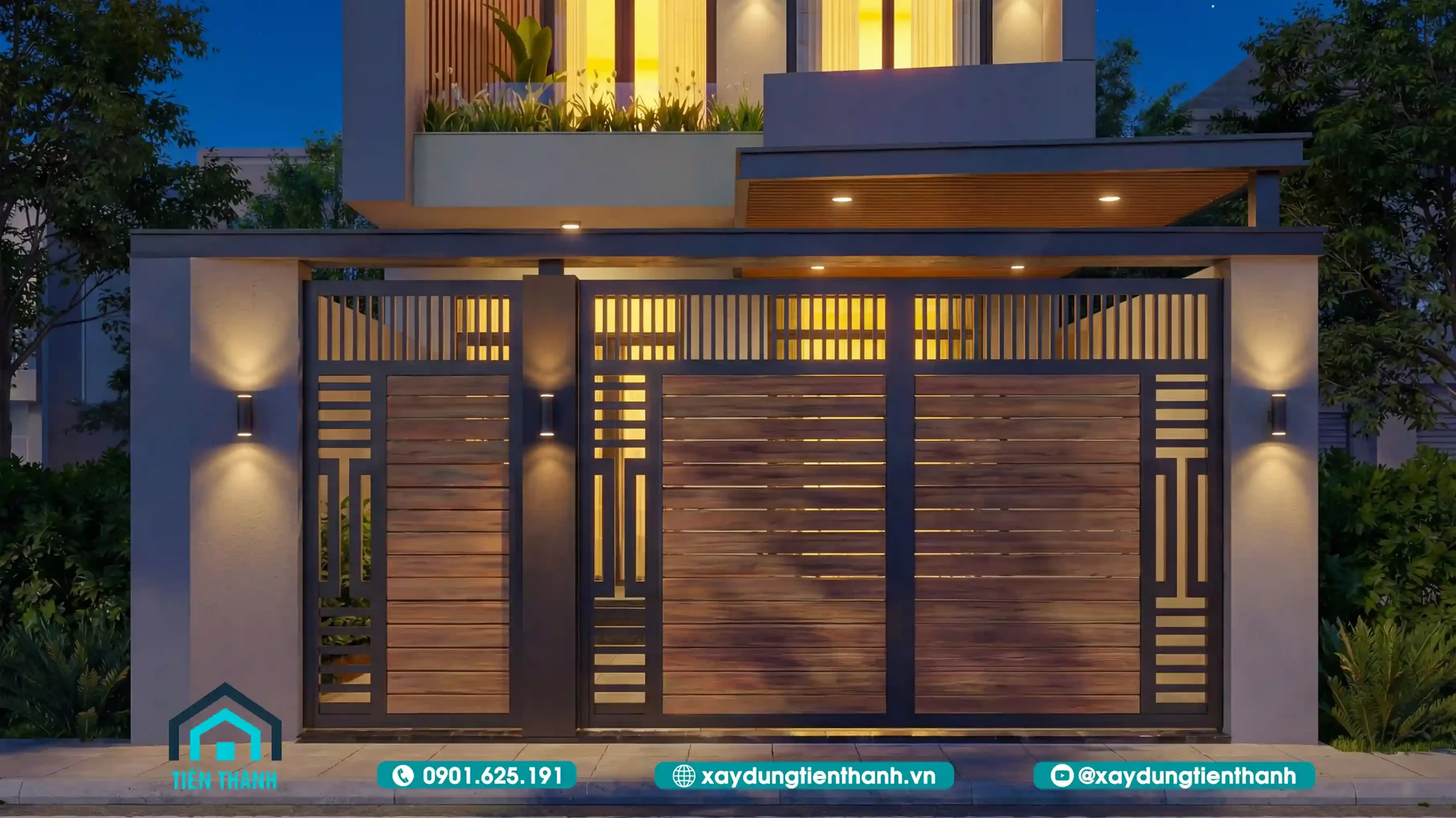 Đối với một ngôi nhà 2 tầng, phần cổng và tường rào đóng vai trò như “bản lề” mở ra không gian sống bên trong. Trong mẫu thiết kế này, hệ cổng được đồng bộ hoàn toàn với kiến trúc của ngôi nhà.