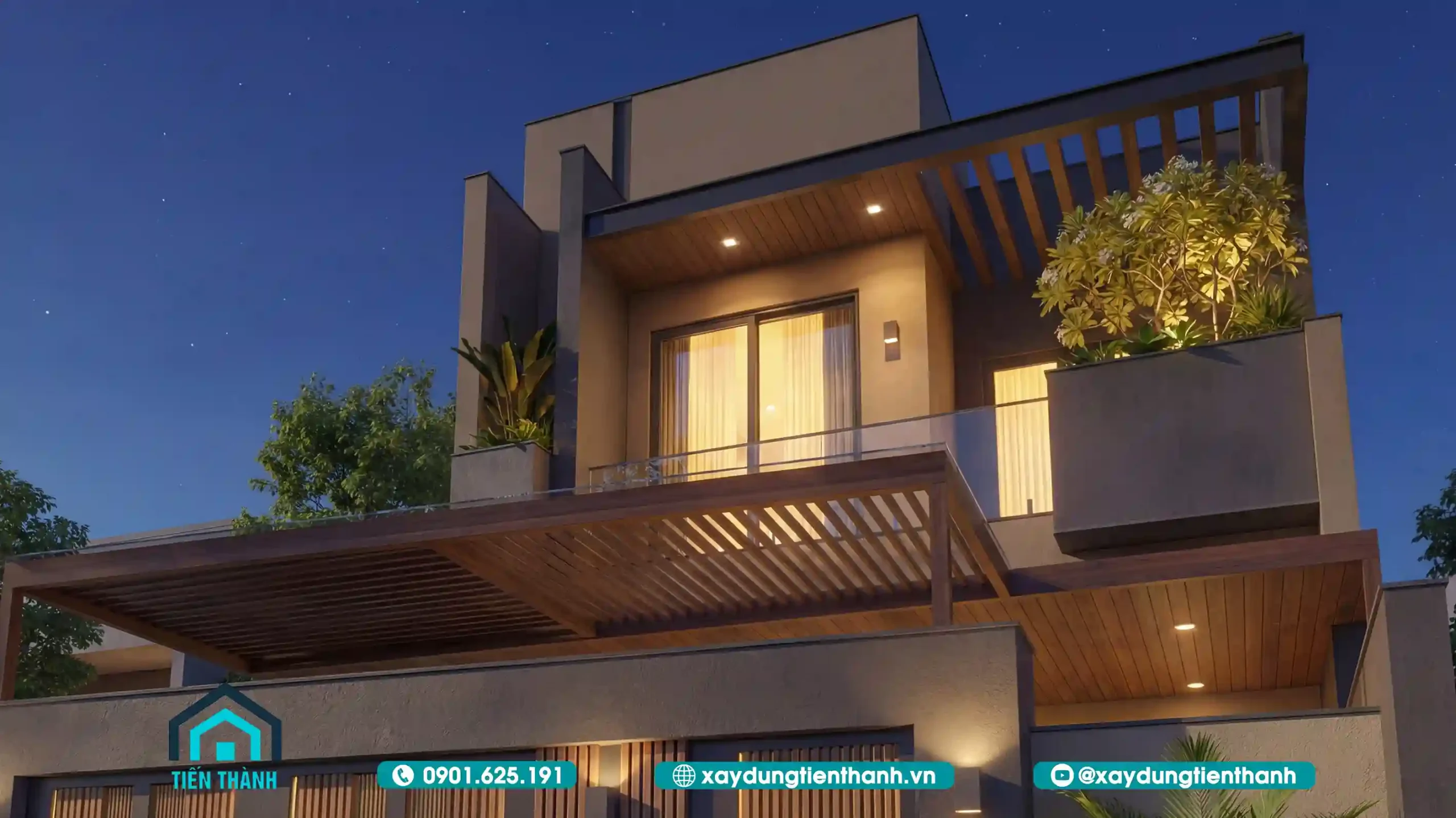 Với mặt tiền rộng, diện tích tiếp xúc với thời tiết rất lớn. Bạn nên ưu tiên sử dụng sơn ngoại thất chống thấm cao cấp, gỗ nhựa (WPC) thay cho gỗ tự nhiên để tránh cong vênh, và kính cường lực dày để cách âm, cách nhiệt tốt.