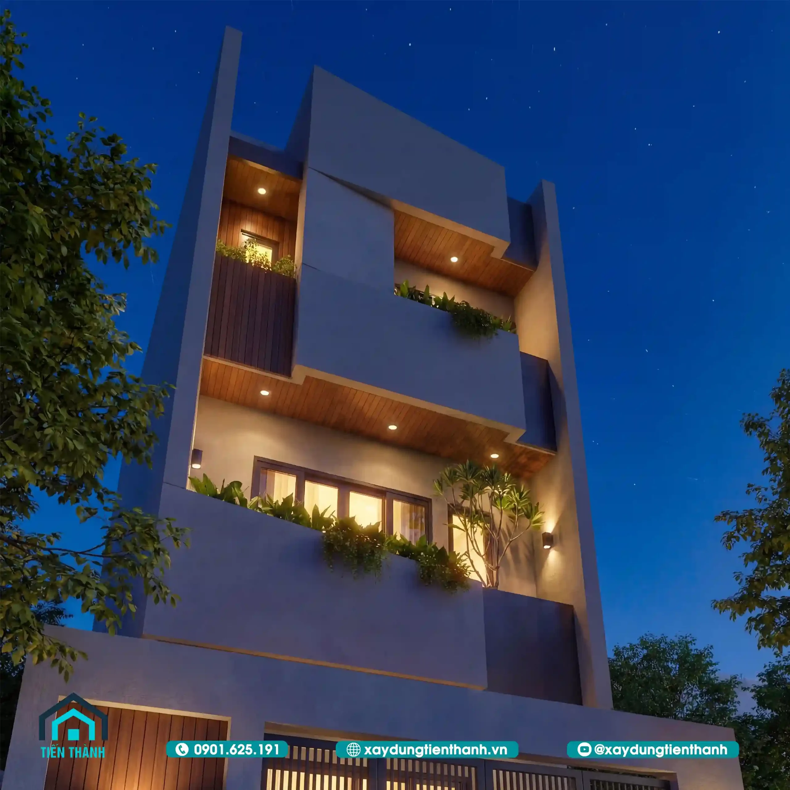 - Lựa chọn nhà thầu: Ưu tiên những đơn vị có kinh nghiệm thi công nhà phố hiện đại. Để đảm bảo các chi tiết hình khối và mảng gỗ ngoài trời được thi công sắc nét.