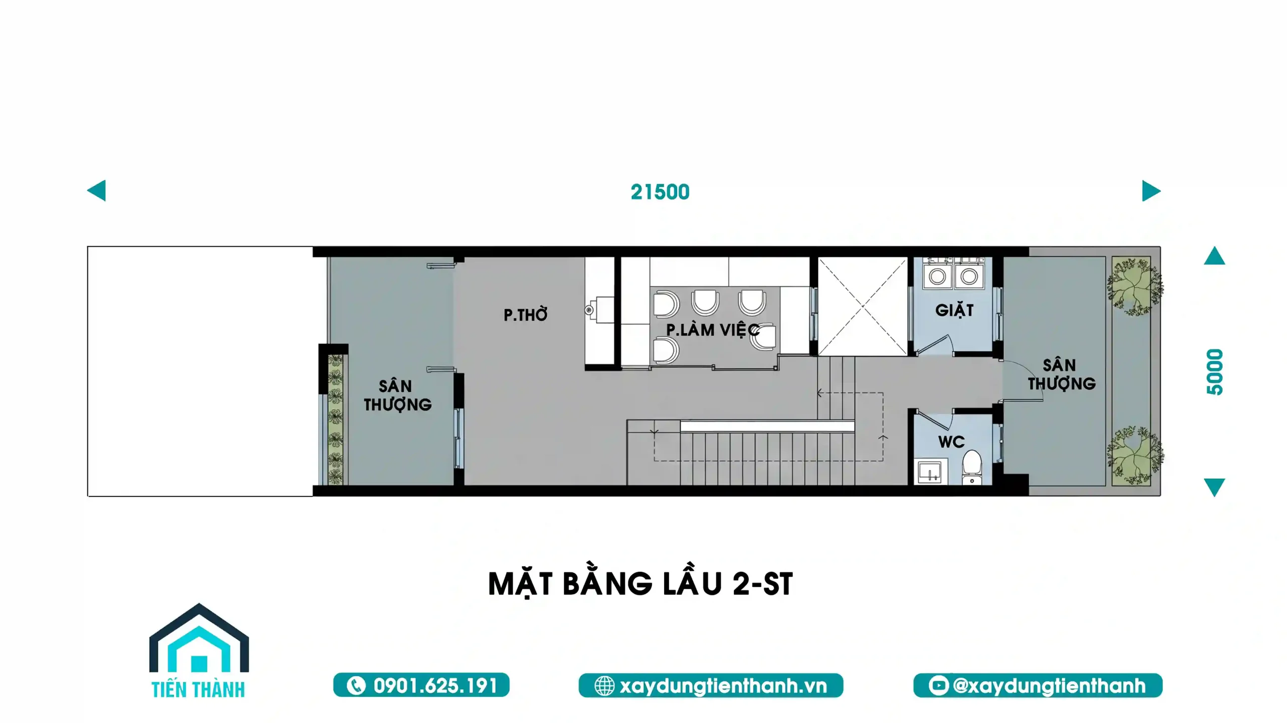 Đối với một mẫu nhà 5×20 3 phòng ngủ, tầng thượng (lầu 2 – ST) đóng vai trò là “lá phổi” và nơi duy trì các giá trị tinh thần cho gia đình. Không gian này không chỉ là nơi giặt phơi mà còn được tận dụng tối đa cho các nhu cầu cao cấp hơn.