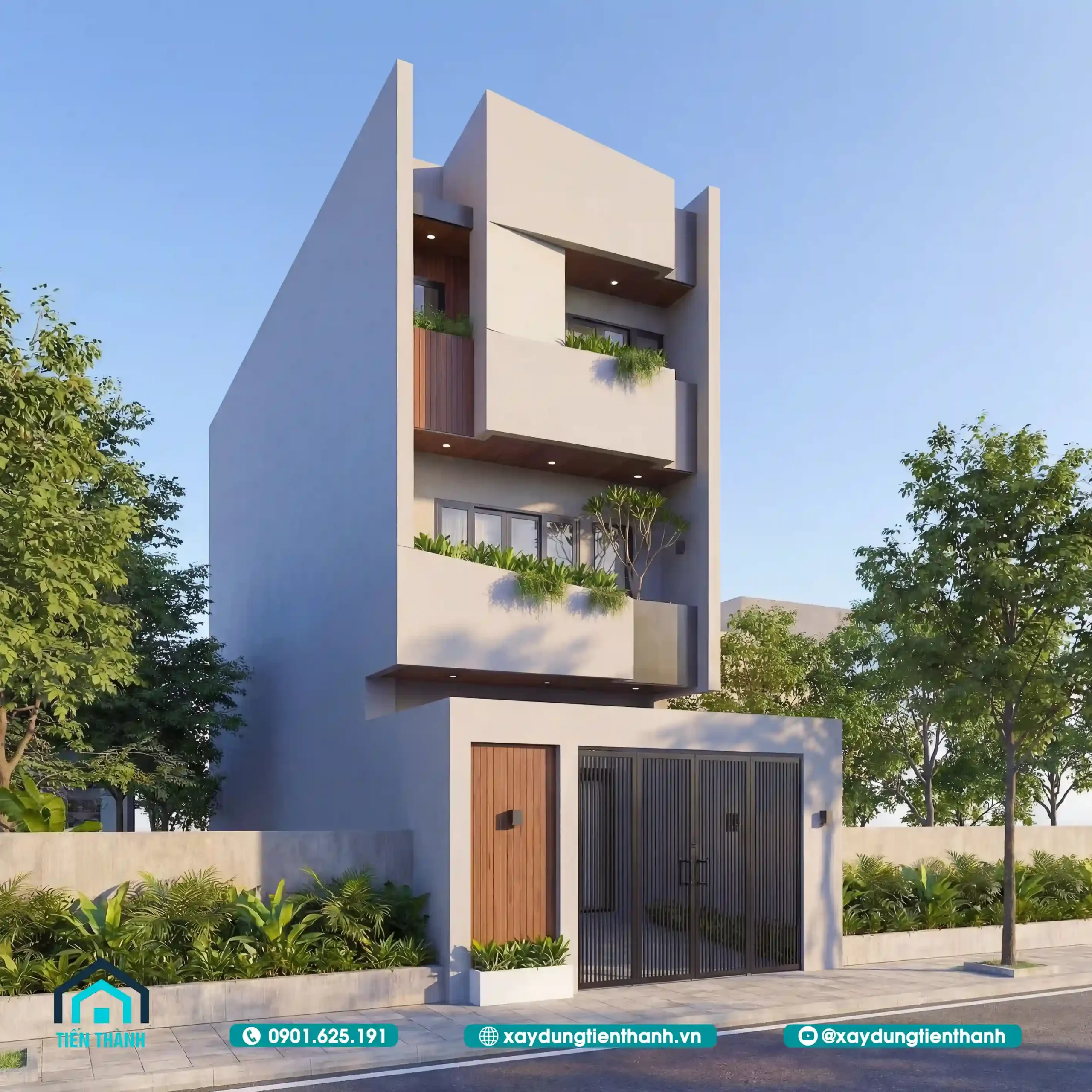 3.Kiến trúc ngoại thất – Phong cách hiện đại và tối giản nhà 5×20 3 phòng ngủ
