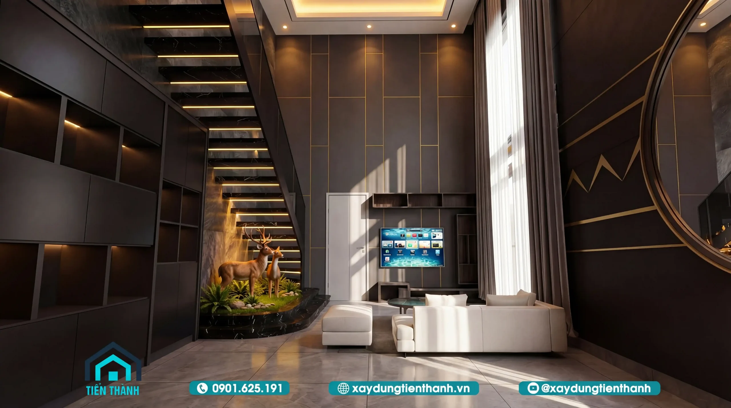 - Lựa chọn đơn vị thi công: Cần chọn đơn vị uy tín có kinh nghiệm xử lý các không gian thông tầng để tránh tình trạng nứt tường hoặc thấm dột sau này.