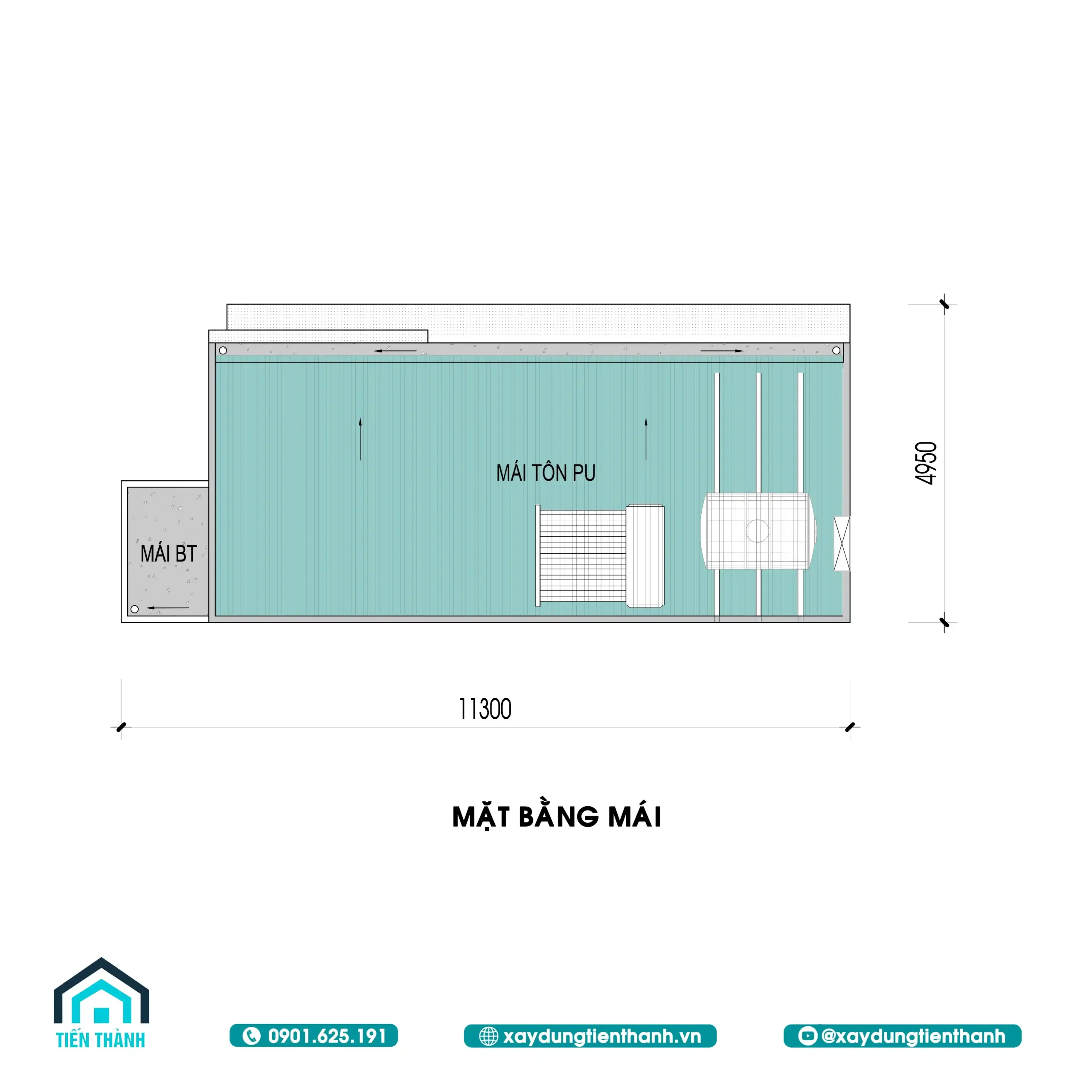 Mặt bằng mái thể hiện vật liệu và thiết bị nước