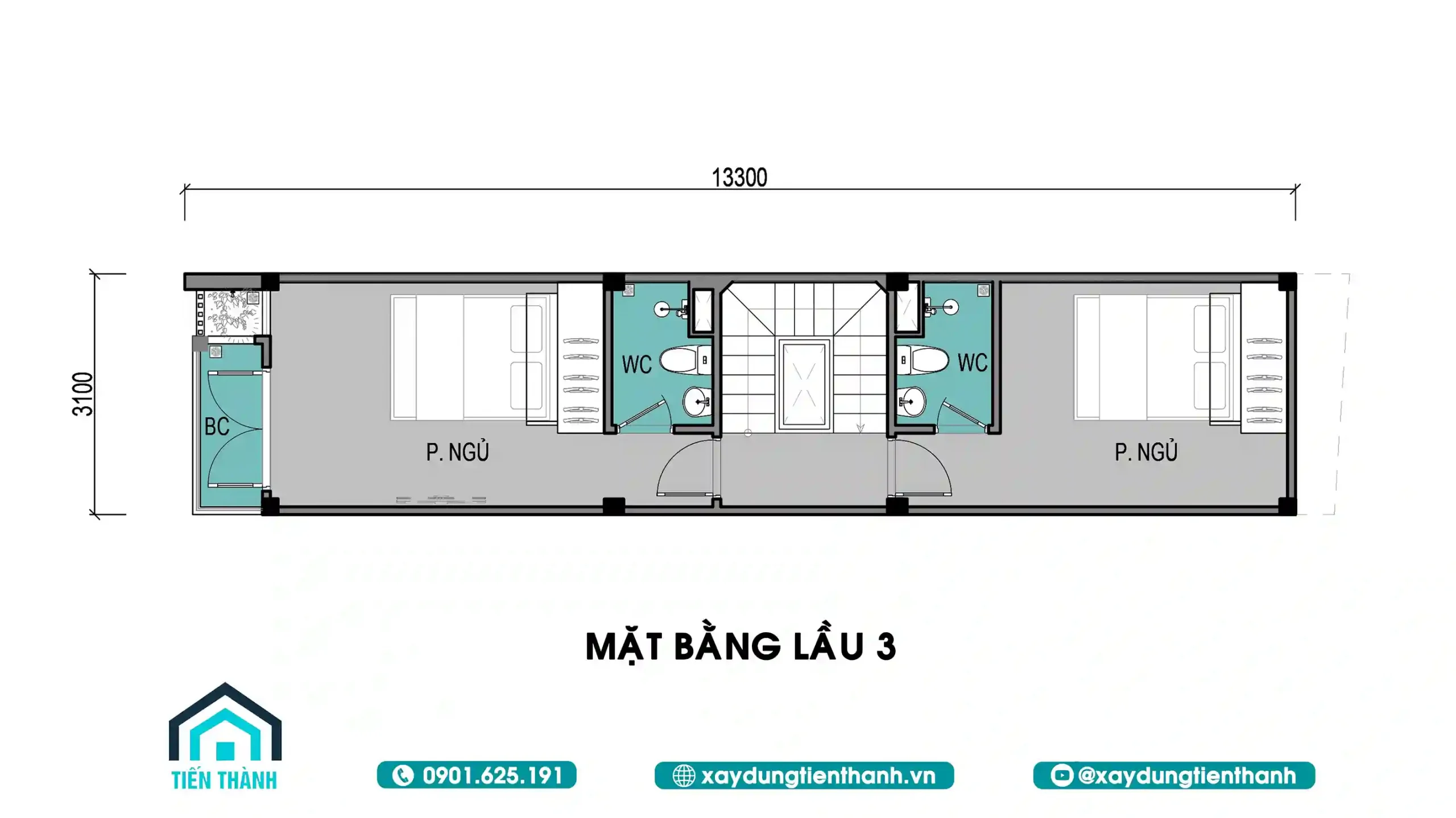 2.Bản vẽ thiết kế mặt bằng chi tiết cho nhà ngang 3m 5 tầng