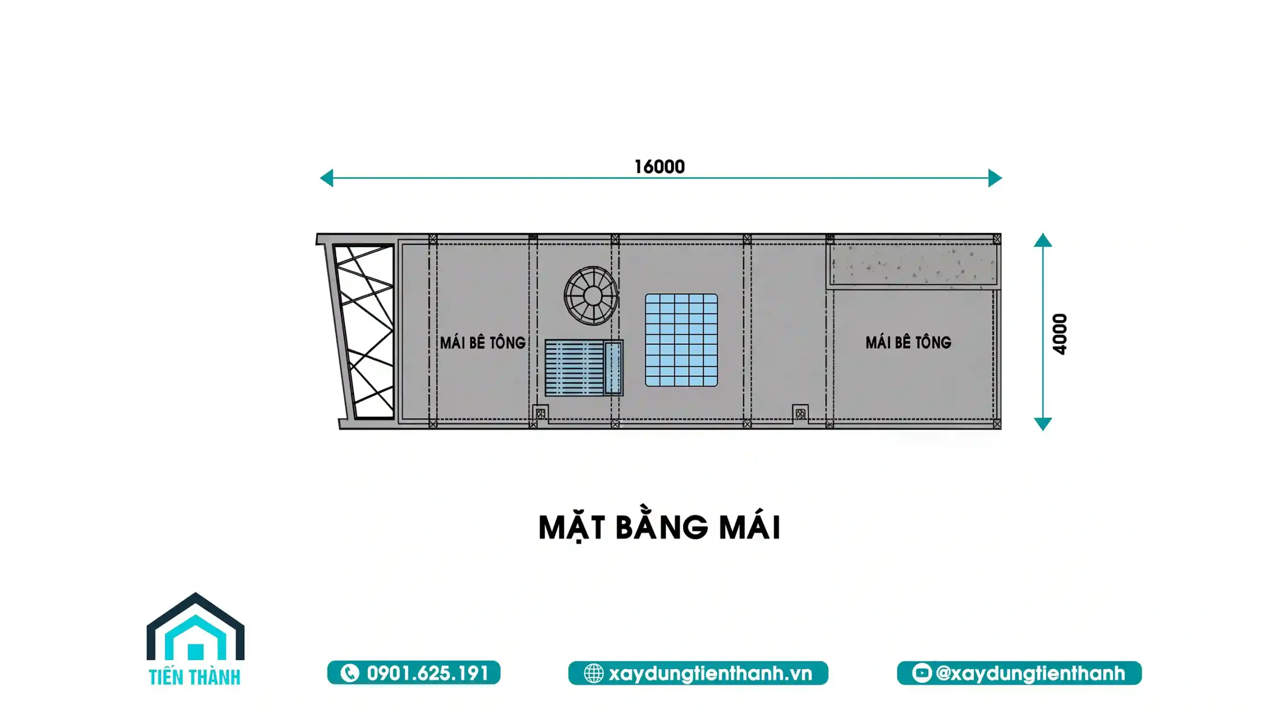 Với mái bê tông cốt thép, việc xử lý độ dốc và hệ thống thoát nước mưa được kiến trúc sư đặc biệt quan tâm. Các rãnh thoát nước được bố trí chạy dọc theo chu vi mái, dẫn nước về các hộp kỹ thuật phía sau, tránh tình trạng thấm dột – nỗi lo lớn nhất của những ngôi nhà cao tầng.