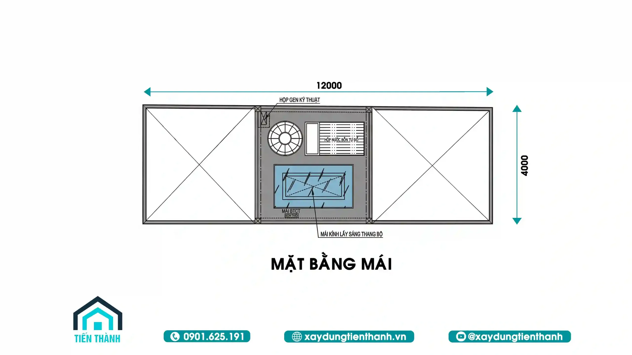 - Khu vực kỹ thuật: Nơi đặt bồn nước và hệ thống máy nước nóng năng lượng mặt trời.