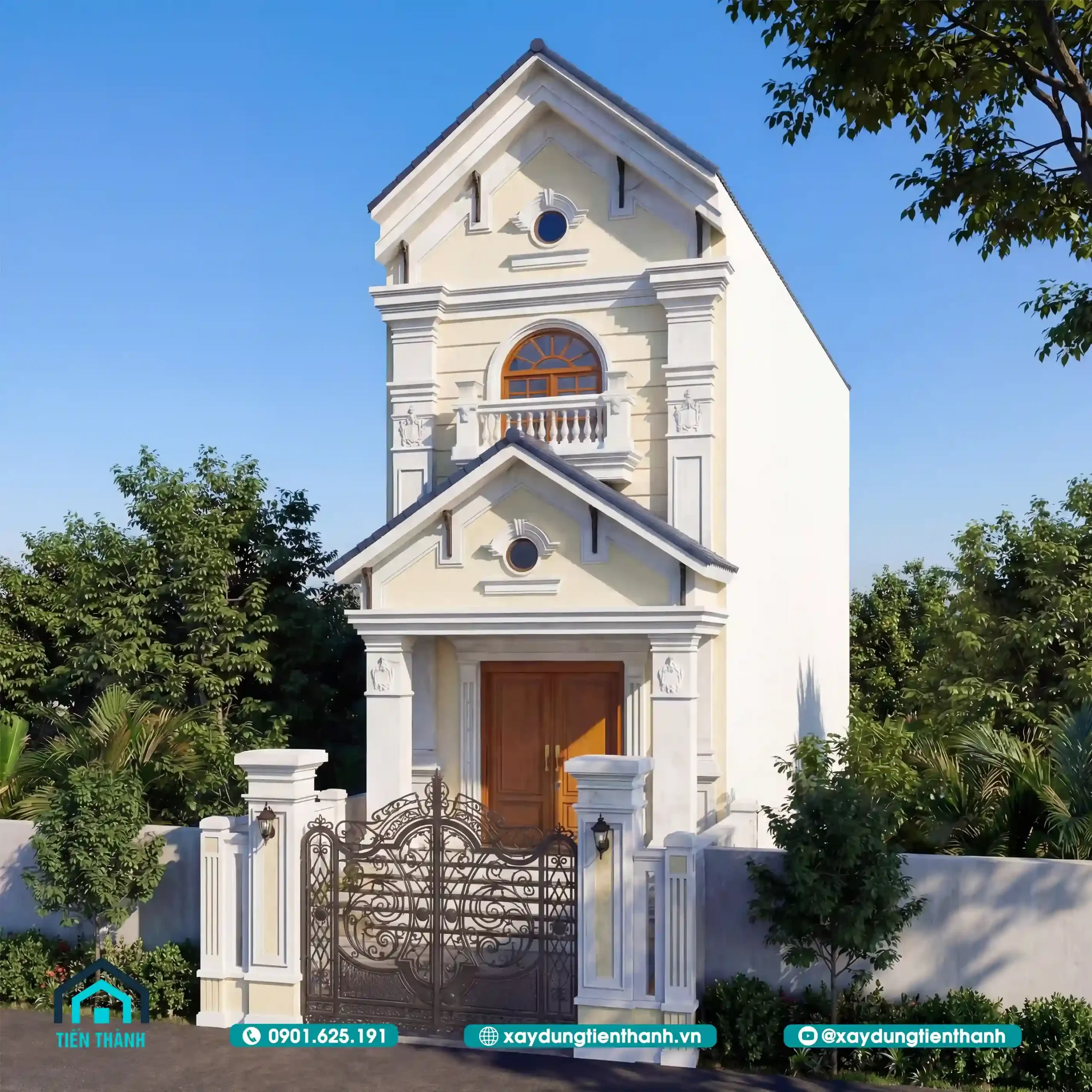 Trong những năm gần đây, xu hướng thiết kế nhà 2 tầng tân cổ điển ngang 5m đang trở thành lựa chọn hàng đầu của nhiều gia đình Việt. Với sự kết hợp hoàn hảo giữa nét đẹp quý phái của kiến trúc cổ điển và sự phóng khoáng, tiện nghi của phong cách hiện đại, mẫu nhà này không chỉ khẳng định vị thế của gia chủ mà còn tối ưu hóa không gian sống trên diện tích đất phân lô phổ biến. Bài viết dưới đây sẽ phân tích chi tiết từ phối cảnh ngoại thất đến bản vẽ mặt bằng của một siêu phẩm nhà phố tân cổ điển mặt tiền 5m.