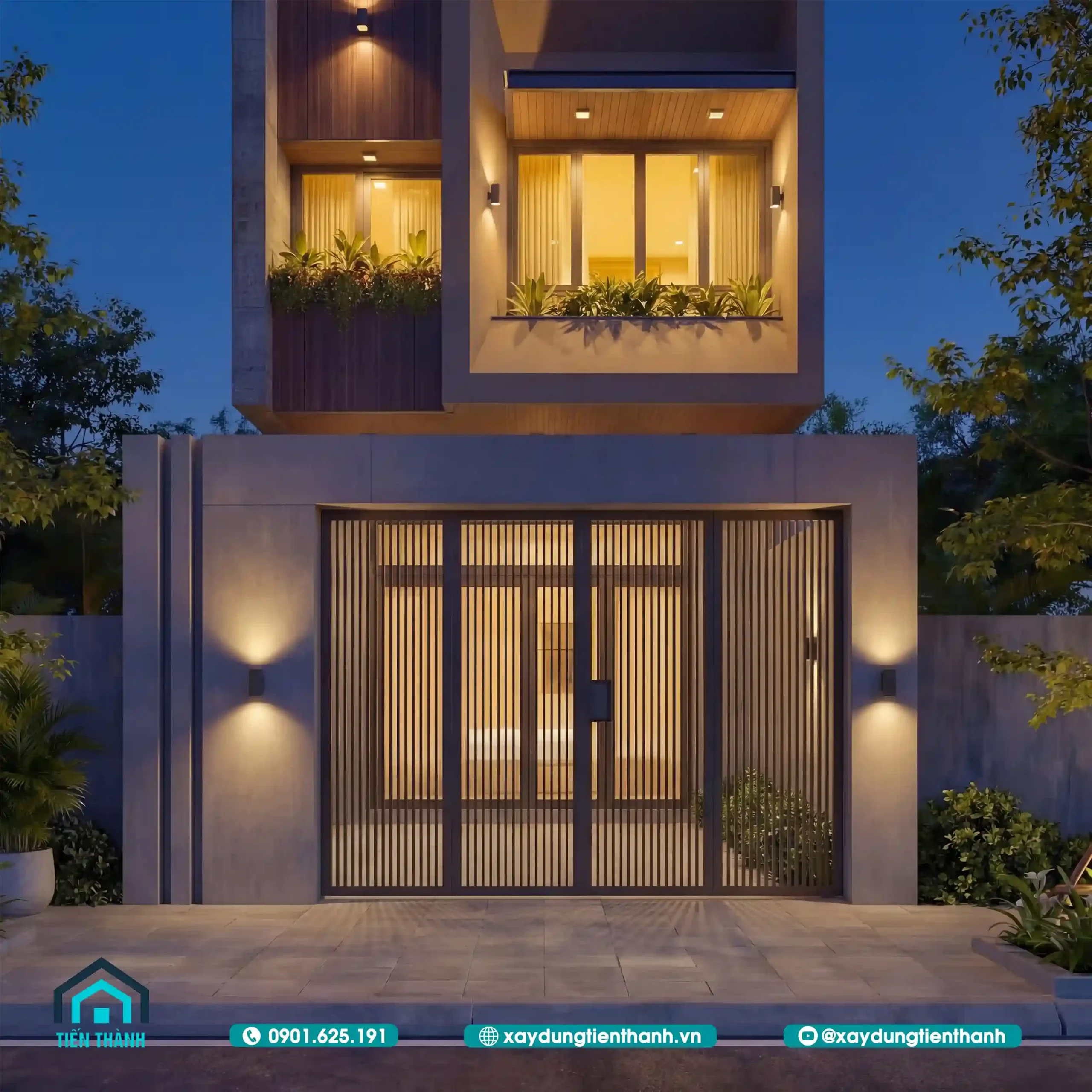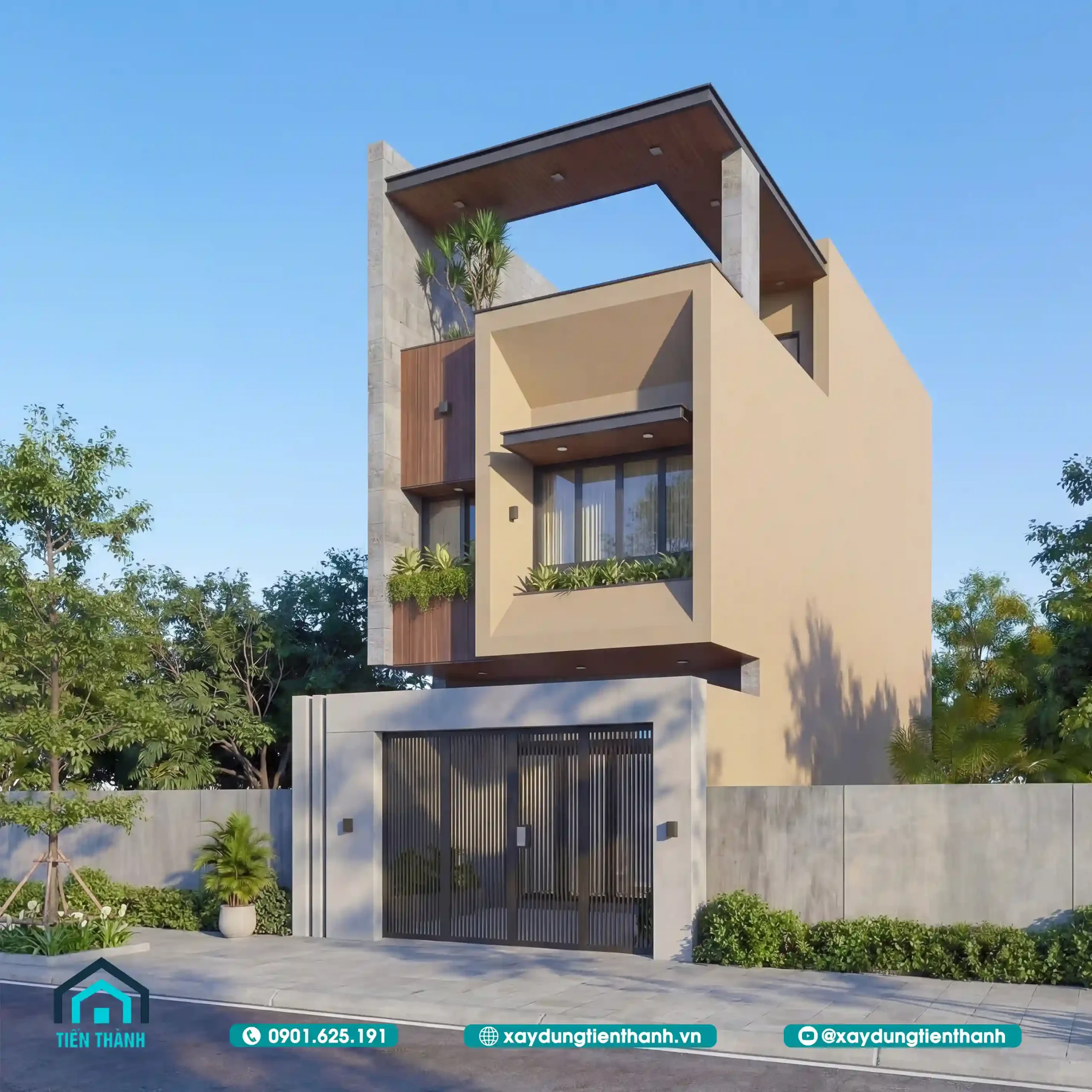 Cổng rào là chi tiết thường bị bỏ qua nhưng lại quyết định rất lớn đến vẻ đẹp tổng thể của thiết kế nhà 5×20 3 tầng. Với một mặt tiền 5m, cổng rào cần sự cân đối giữa an ninh và độ thoáng.
