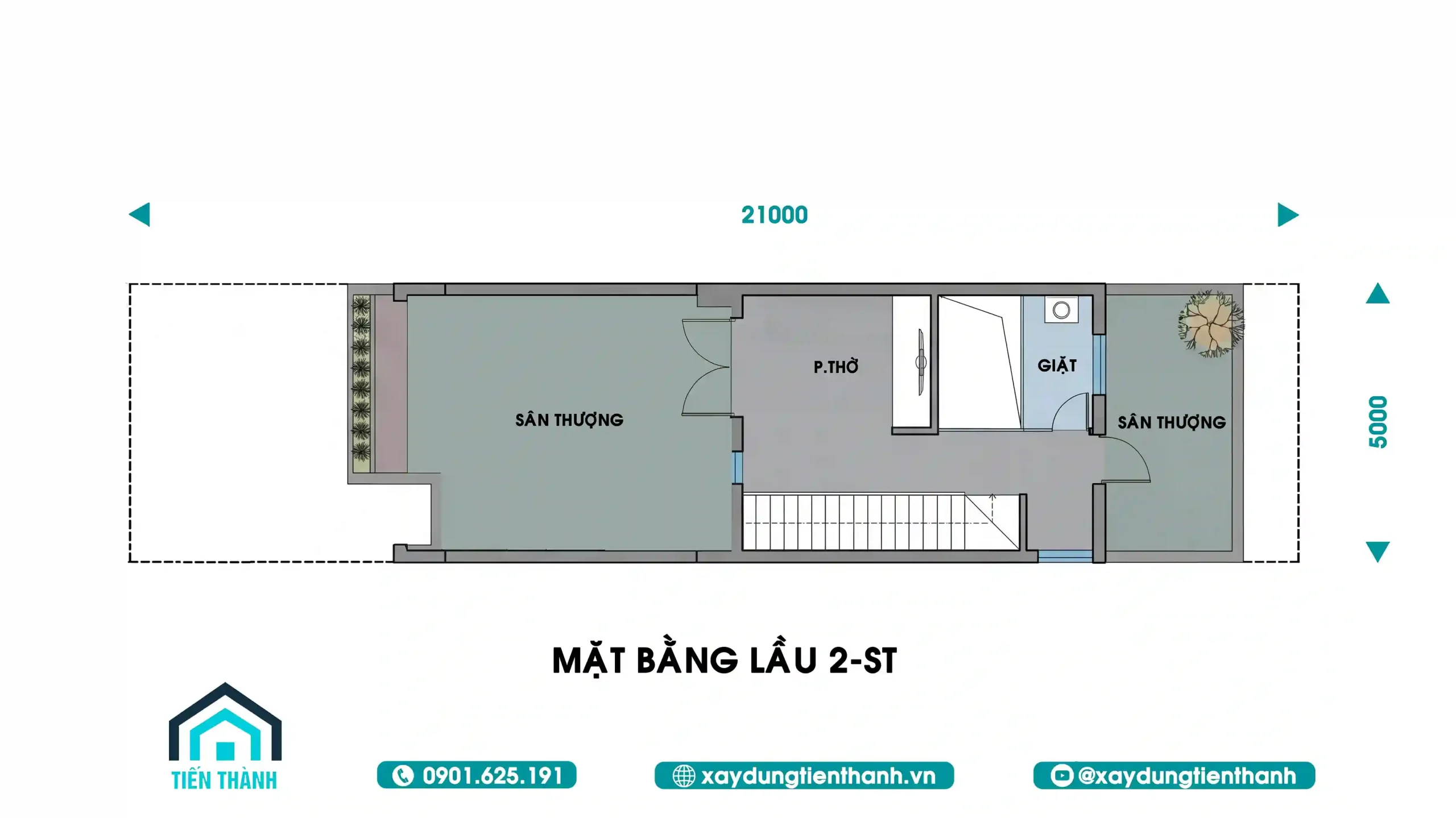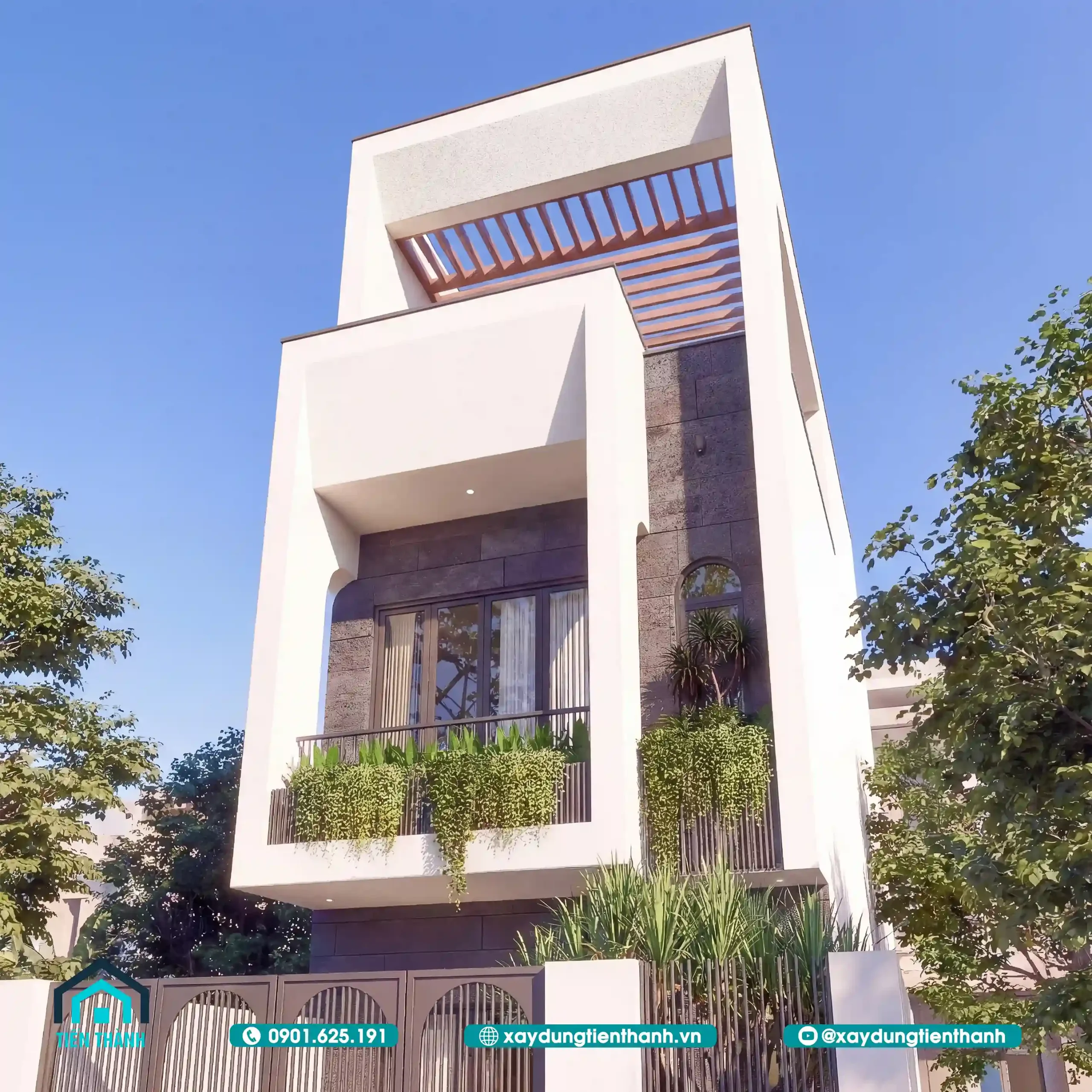 Sân thượng trước và sau: Đây là khoảng thở quý giá cho nhà phố 5x20m. Sân thượng phía trước có thể trồng cây cảnh, đặt bàn trà; sân thượng phía sau dùng làm sân phơi hoặc trồng rau sạch.
